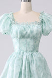 Linia Kwadratowy dekolt Jasnoniebieska Warstwowa Kwiatowa Długa Sukienka Na Studniówkę Z Falbankami