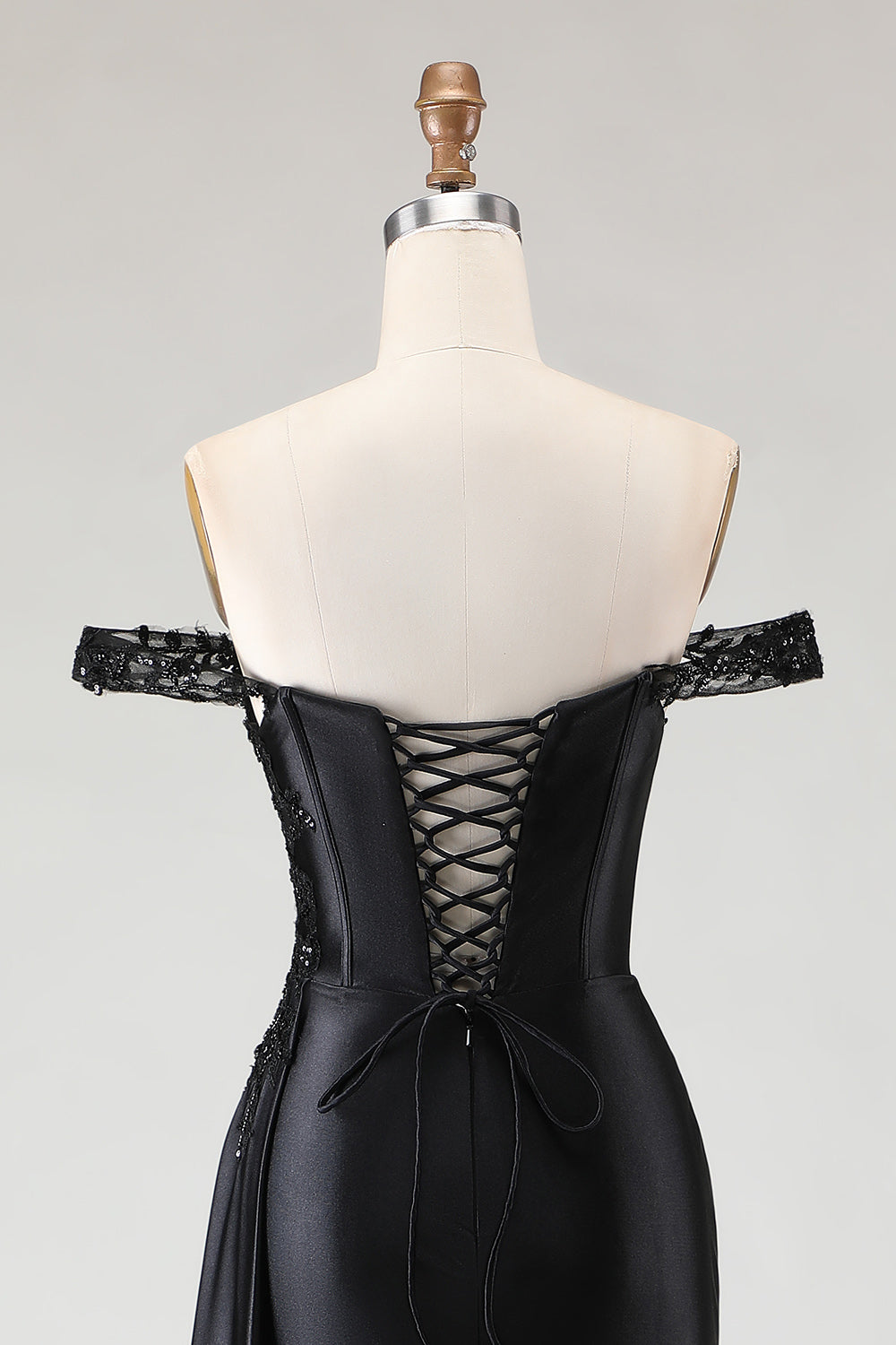 sukienka z cekinami z cekinami z odsłoniętymi ramionami i rozcięciem