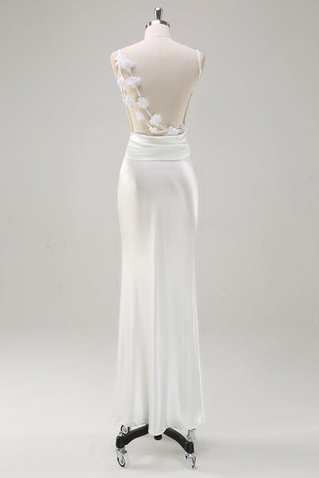 Biała Satynowa Osłona Długa Sukienka Na Studniówkę