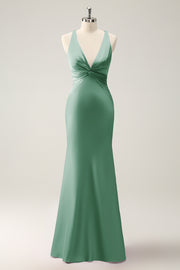 Eukaliptus syrenka z dekoltem w serek satynowa długa Sukienka Na Wesele
