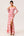 Różowa kwiatowa pochwa z falbankami długa sukienka dla gości weselnych z rozcięciem