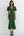 Zielona formalna sukienka midi z dekoltem w serek z falbankami