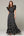 Ciemnobrązowa biała sukienka wizytowa w kropki z szarfą