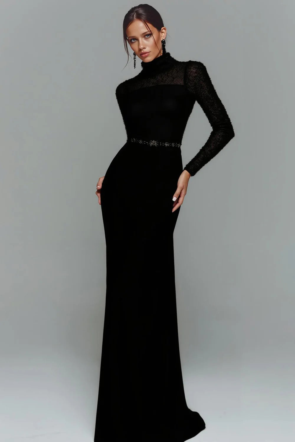 Elegancka Biała Syrenka Wysoka Szyja Długa Sukienki Wieczorowe z Rękawy