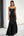 Czarny Cienkich Ramiączkach Długa Osłona Sukienka Wizytowa z Rozcięciem