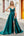 Ciemnozielona Sukienka Na Wesele Dla Mamy z Rozcięciem z Odkrytymi Ramionami