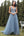 Długa niebieska sukienka na studniówkę z linii A z aplikacjami