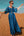 Niebieska Krótki Rękaw Abaya z Koralikami