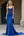Błyszcząca Niebieska Satynowa Długa Syrenka Sukienka Na Studniówkę z Rozcięciem
