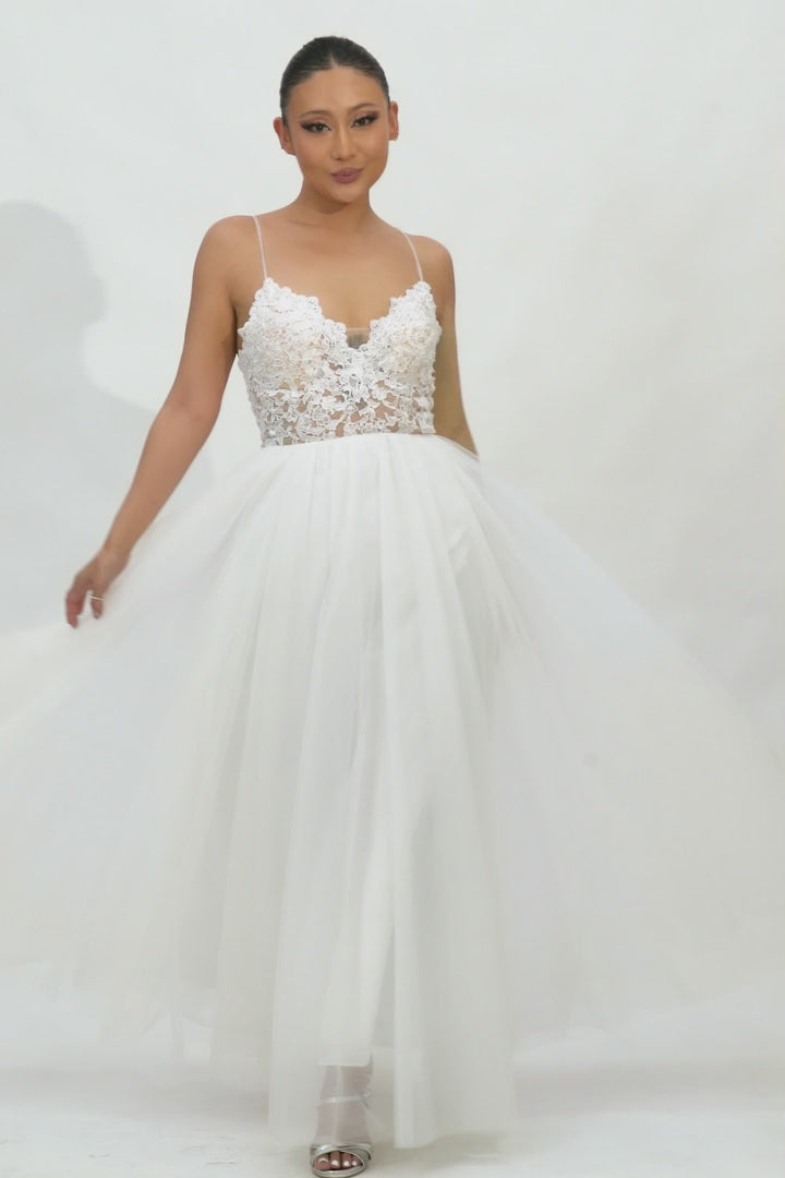 Biała Tiulowe Kształcie Litery A Długa Suknia Ślubna Boho