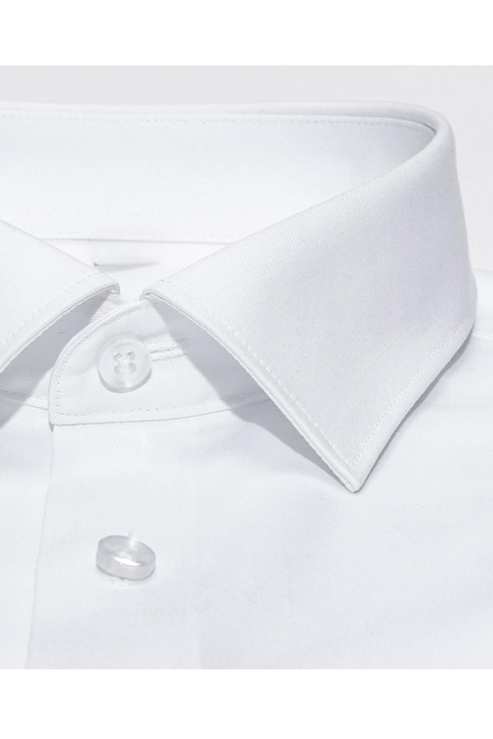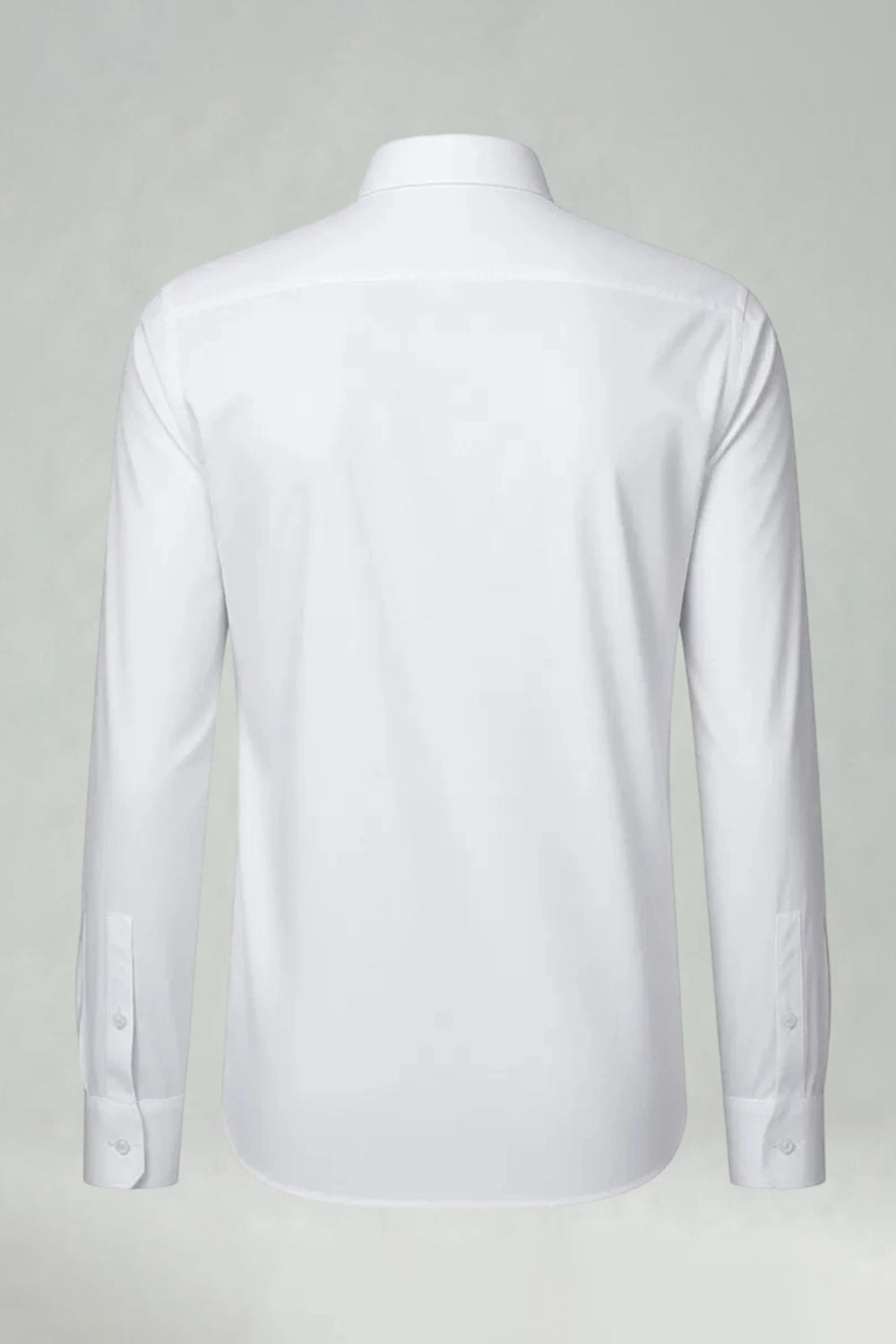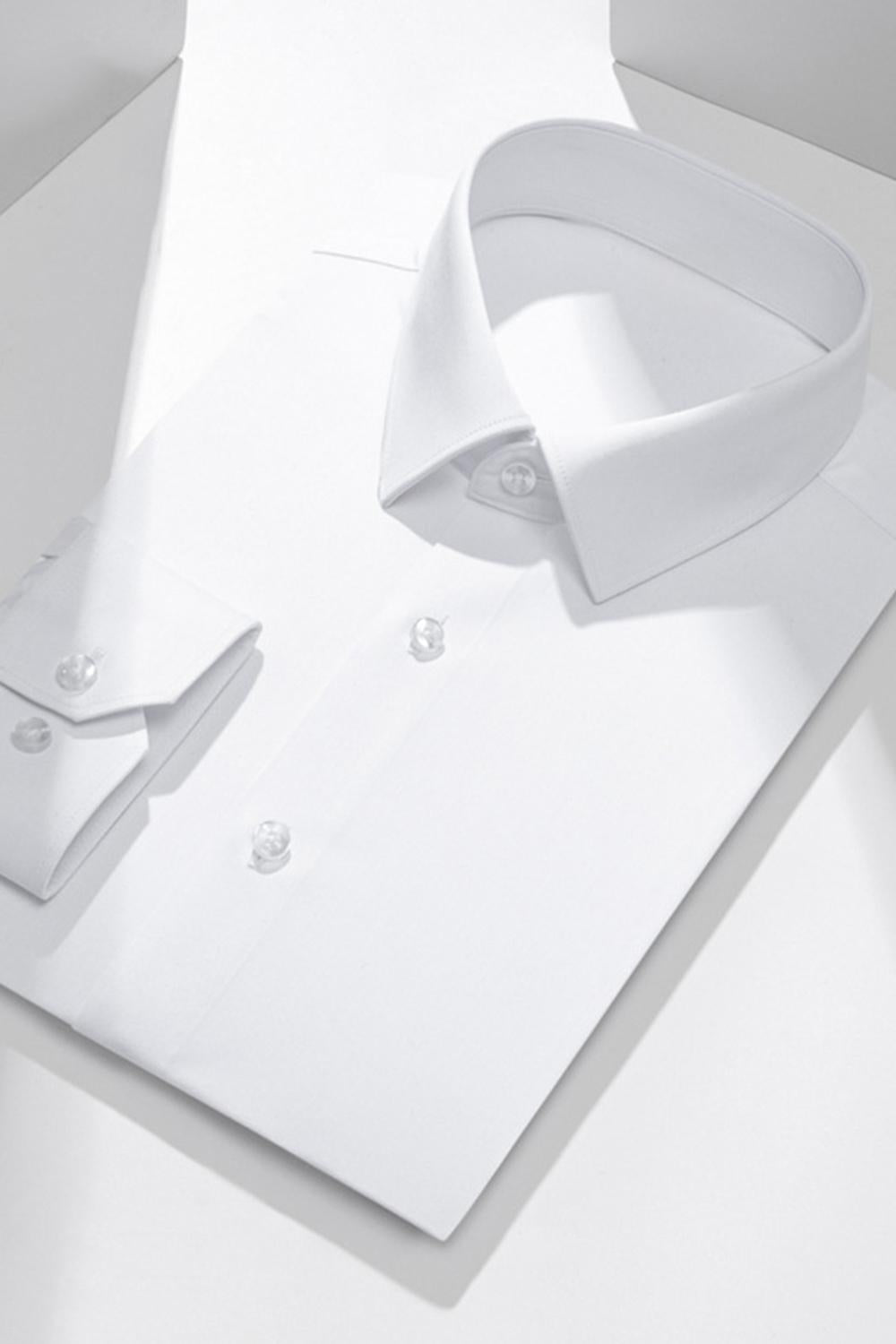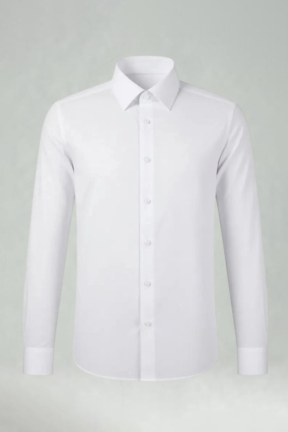 Biała, jednolita klasyczna koszula z długim rękawem – męskie garnitury