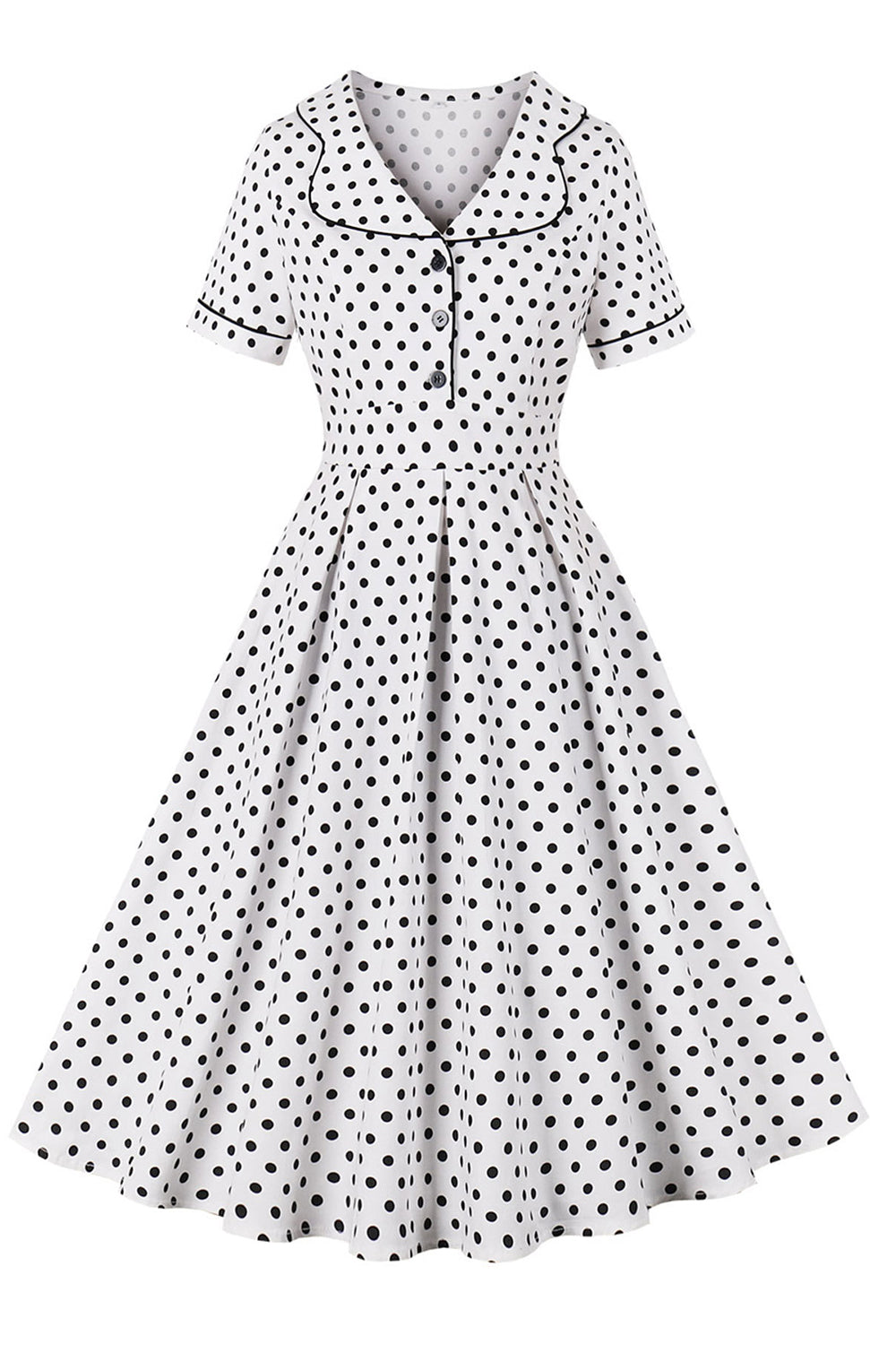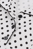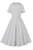 Biała Klapa Dekolt Kropki Vintage Sukienka Z Krótkimi Rękawami