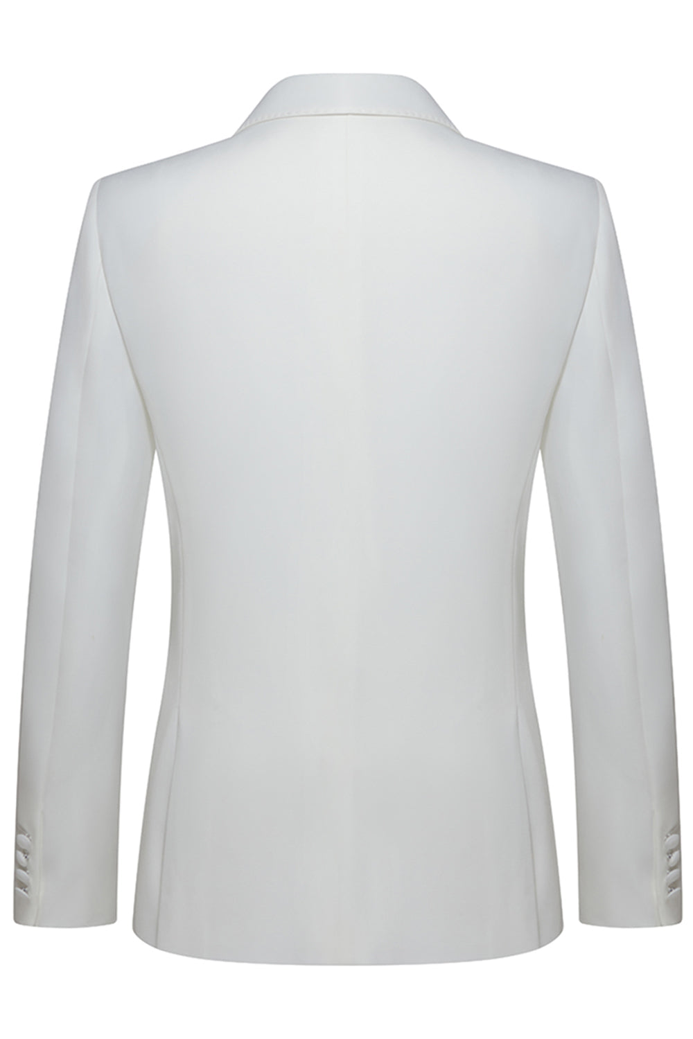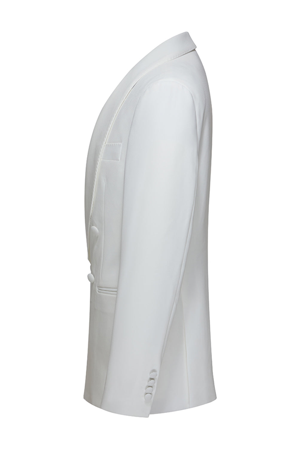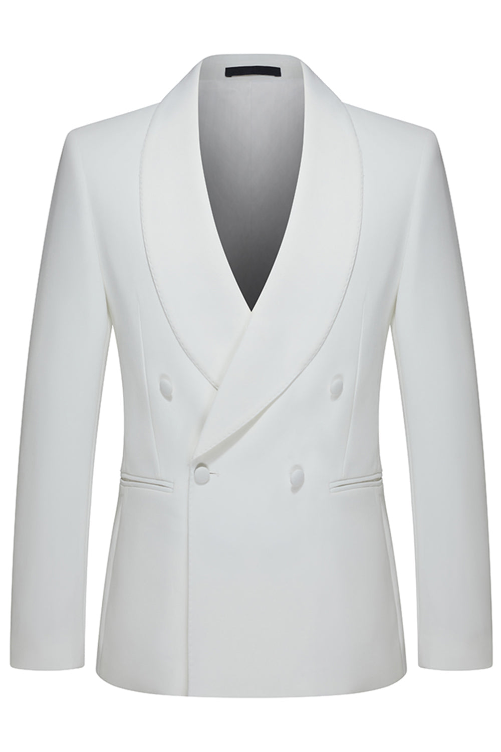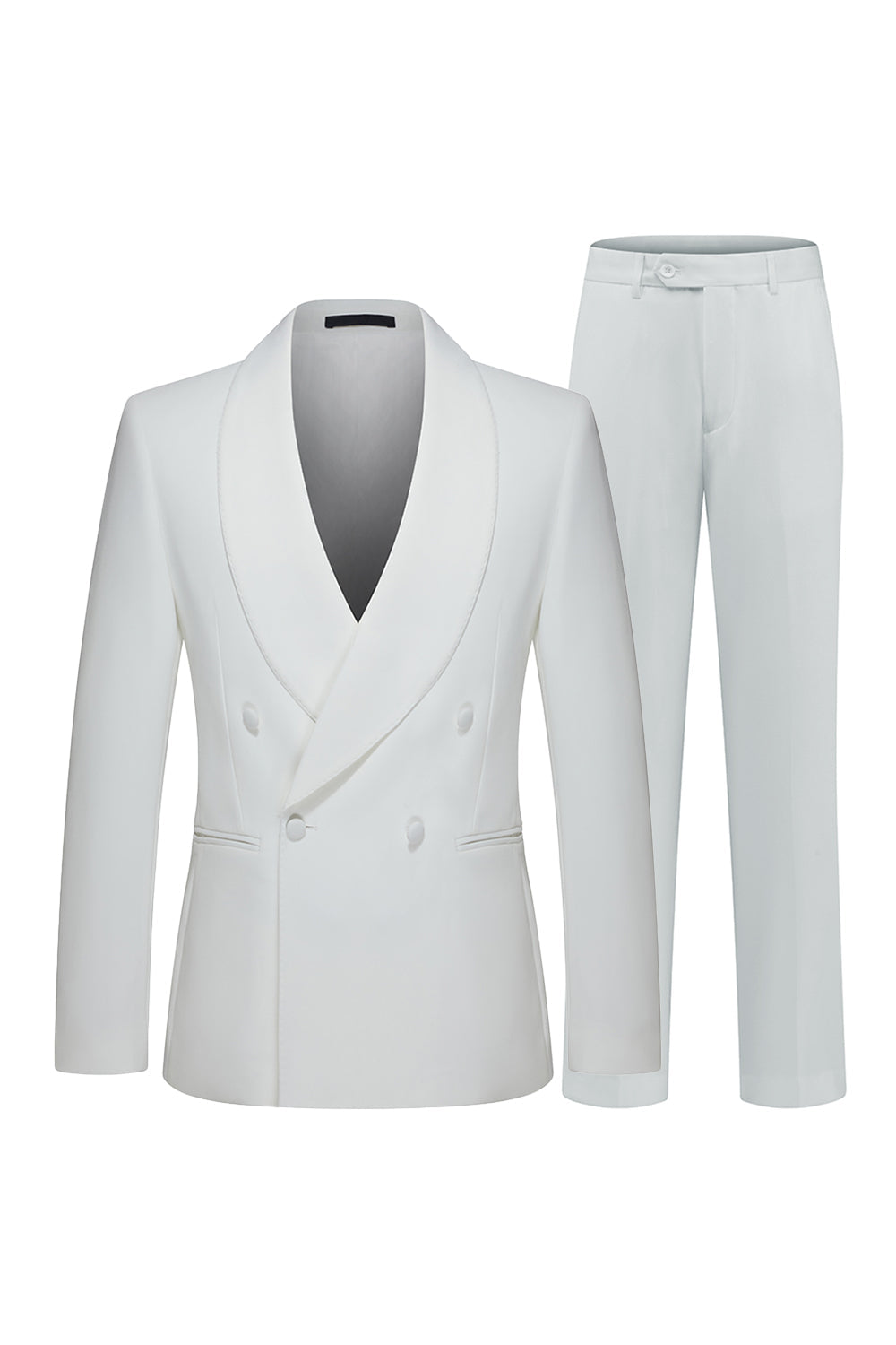 Białe dwuczęściowe męskie garnitury ślubne z klapą szalu