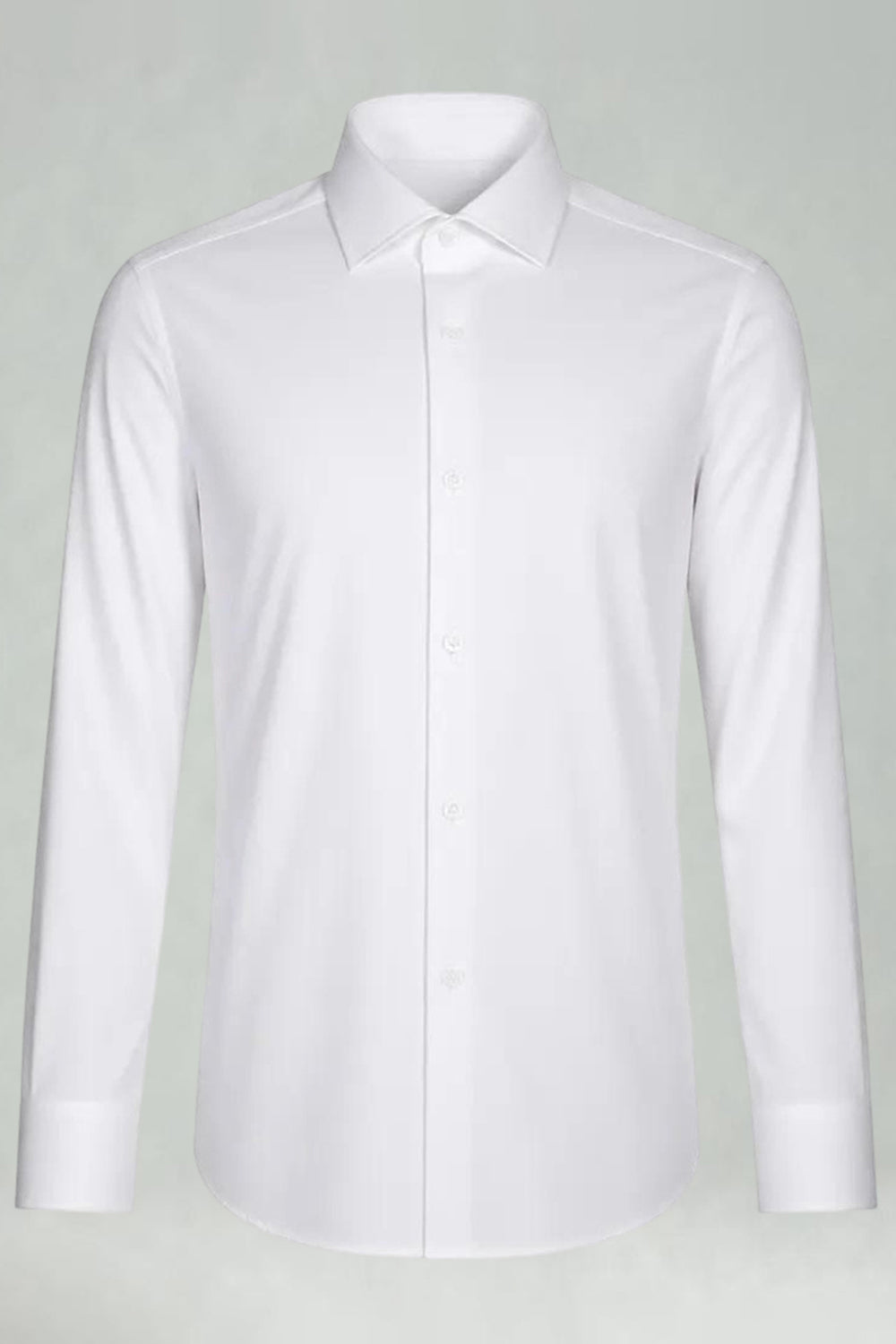 Białe, jednolite, wąskie długie rękawy – koszula męska