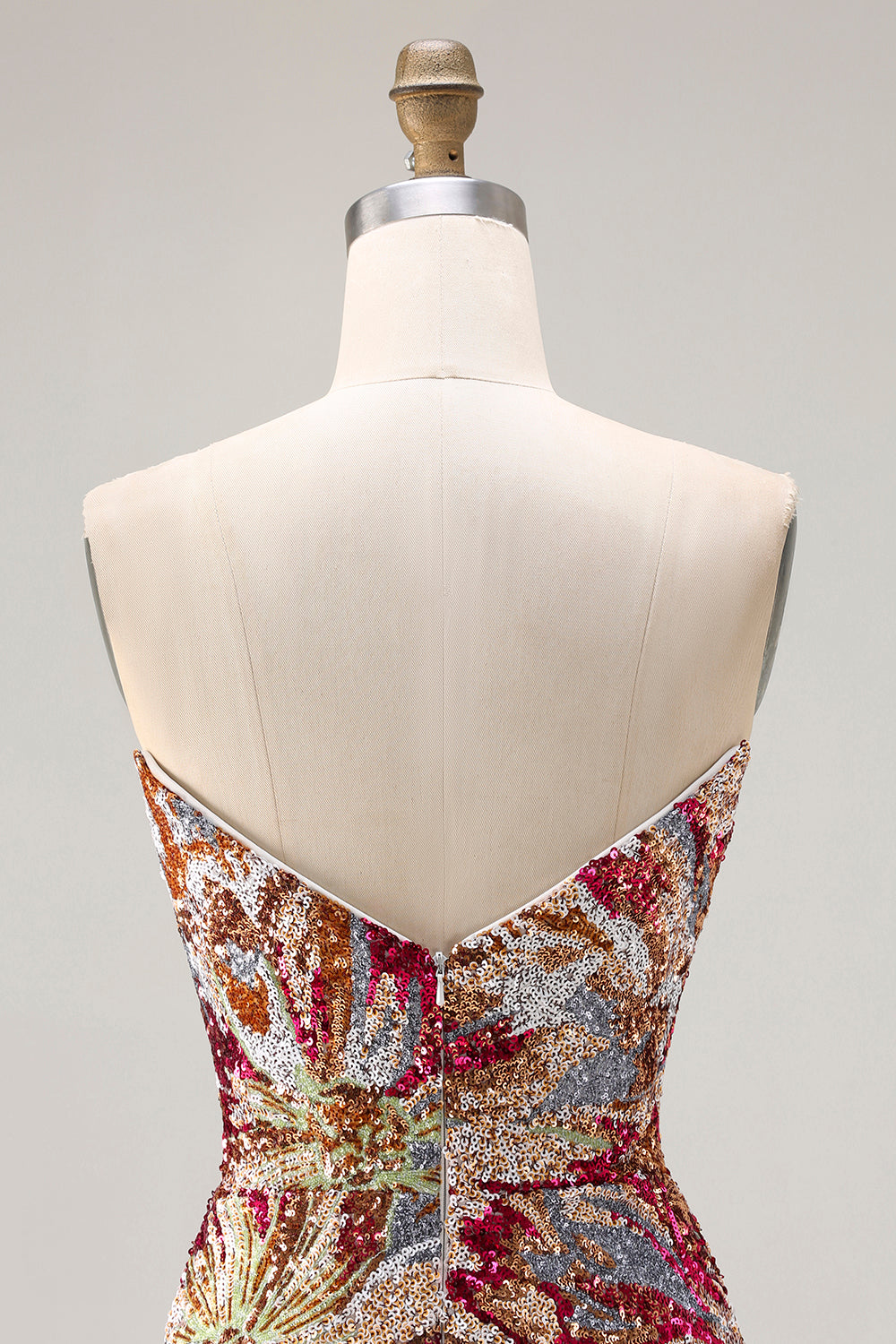 Błyszcząca fuksjowa syrena z cekinami Florla długa sukienka na bal z rozcięciem