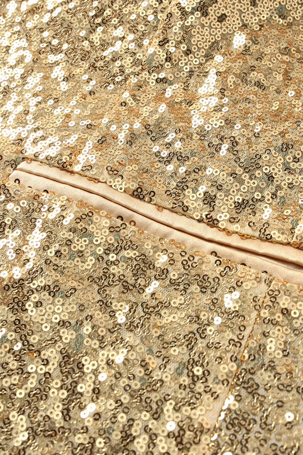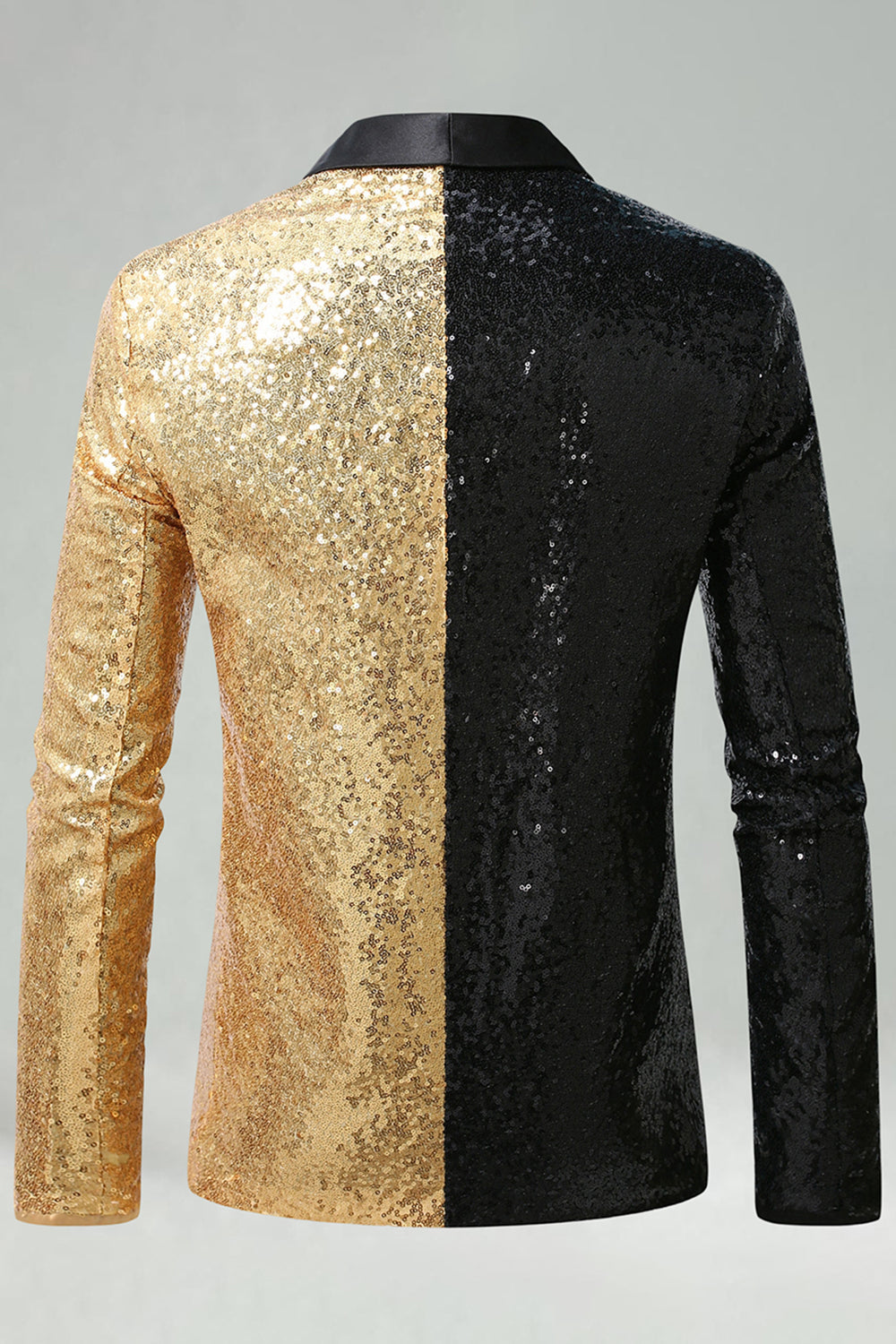 Błyszcząca złota klapa z klapą z pojedynczą klamrą – męska marynarka na bal maturalny