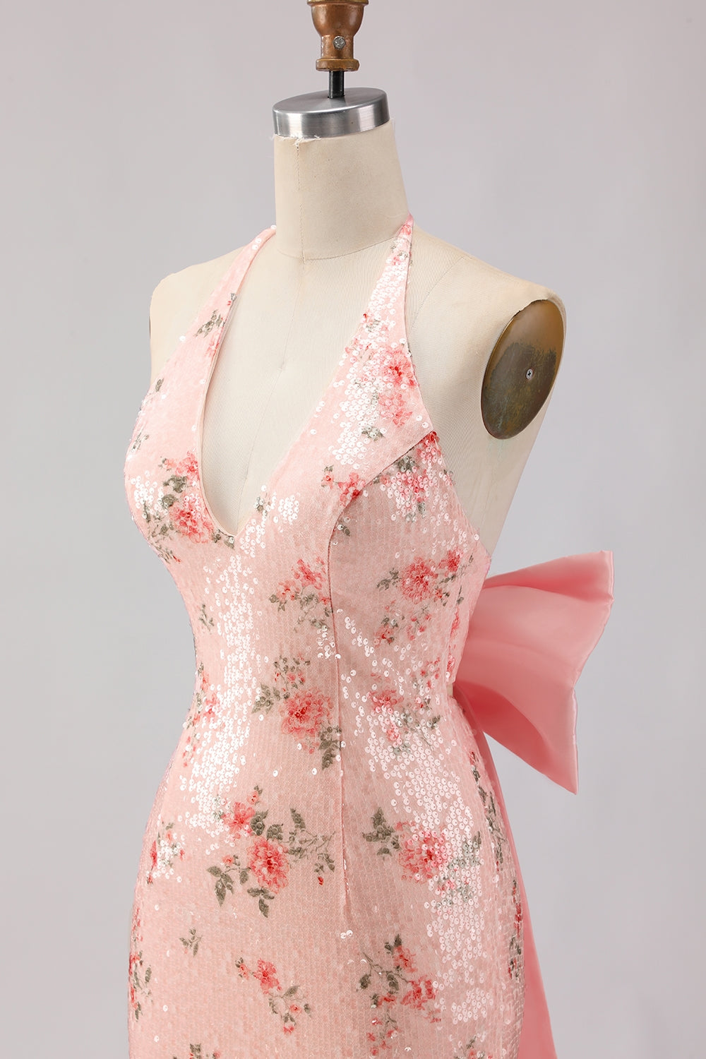Błyszcząca Rumieniec Syrenka Cekinowe Halter Długa Sukienka Na Studniówkę z Łuki