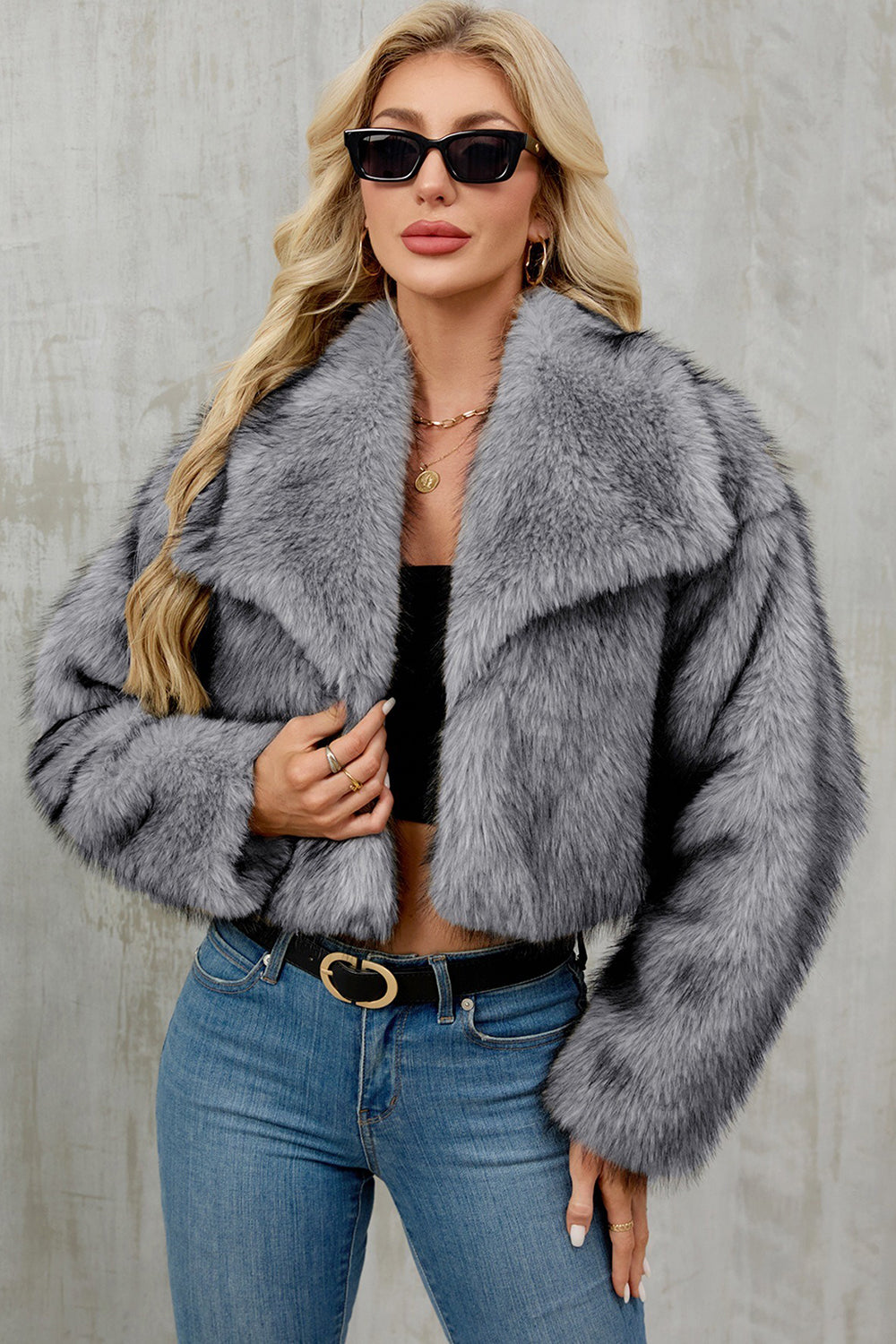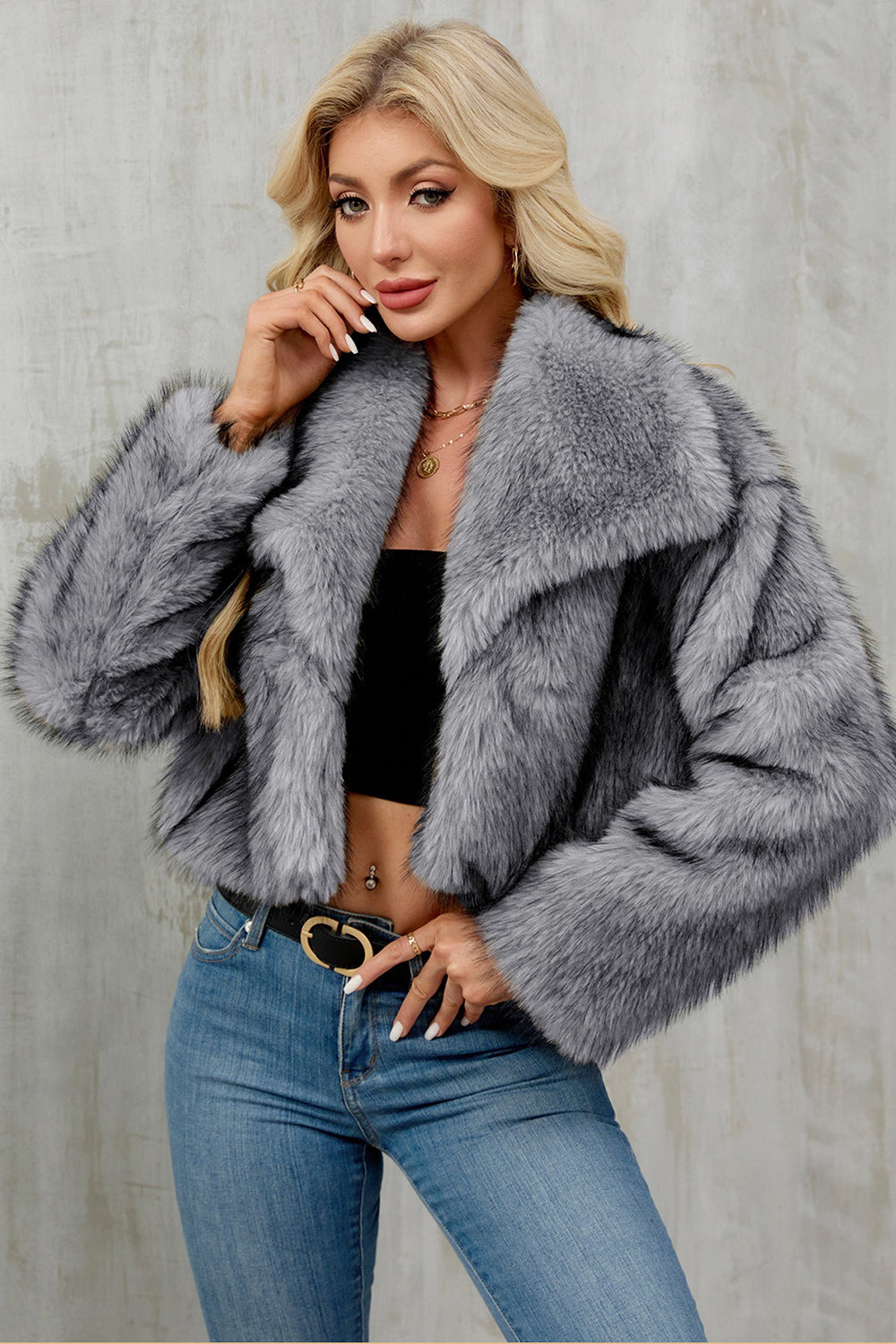 Brązowy szal z klapą kobiet z sztucznym futrem