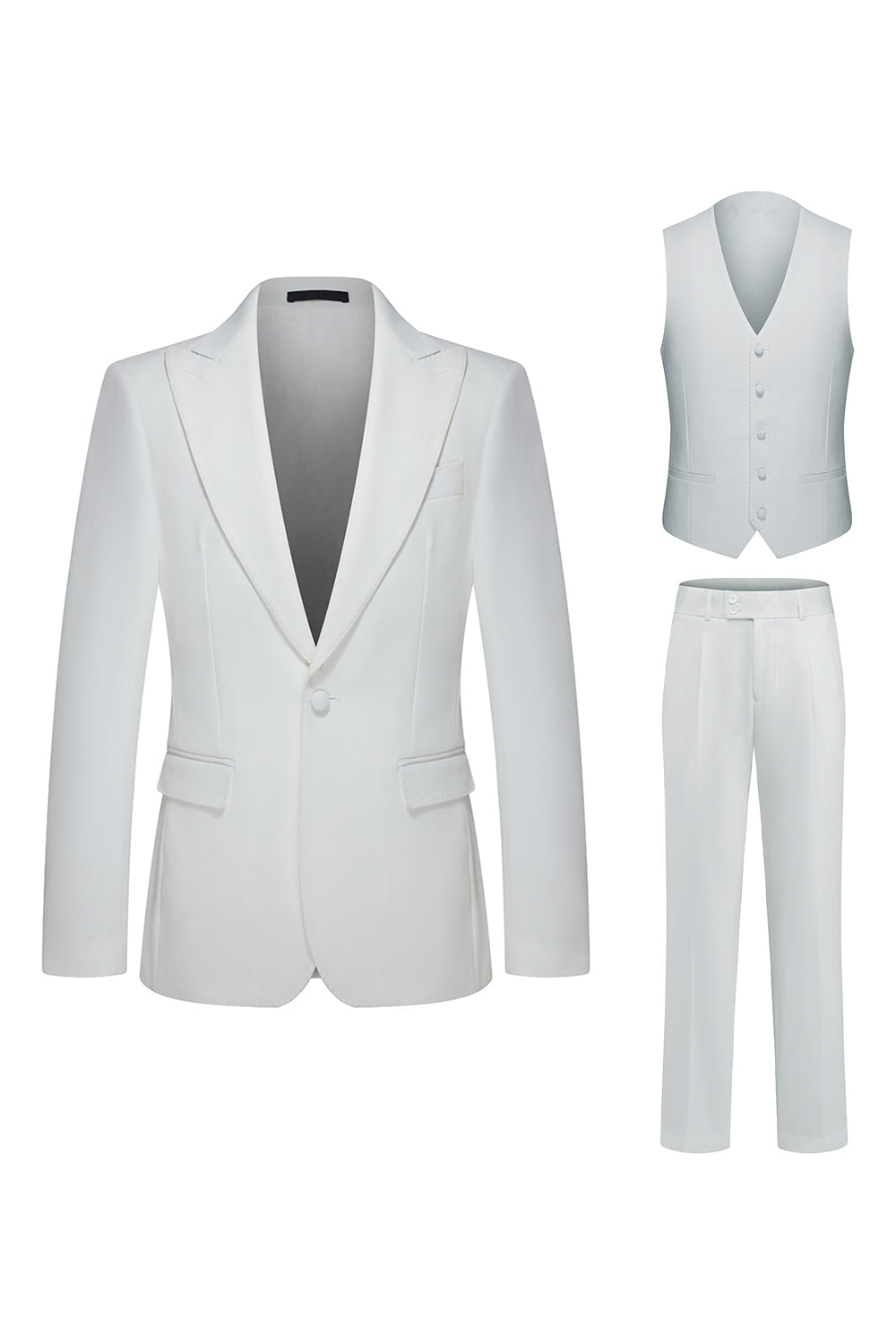 Capel Clael 3-częściowe, jednoguzikowe białe męskie garnitury ślubne