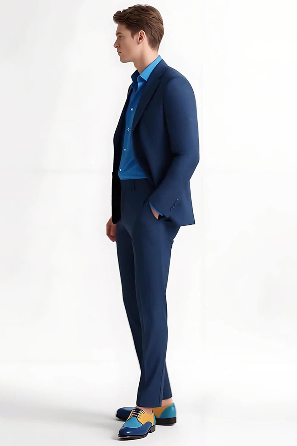 Ciemnoniebieskie klapy z karbem 2-częściowe męskie garnitury na studniówkę