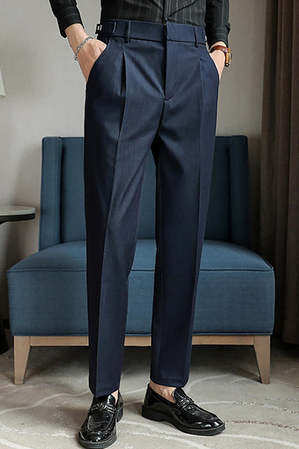 Ciemnoniebieskie męskie spodnie z prostymi nogawkami