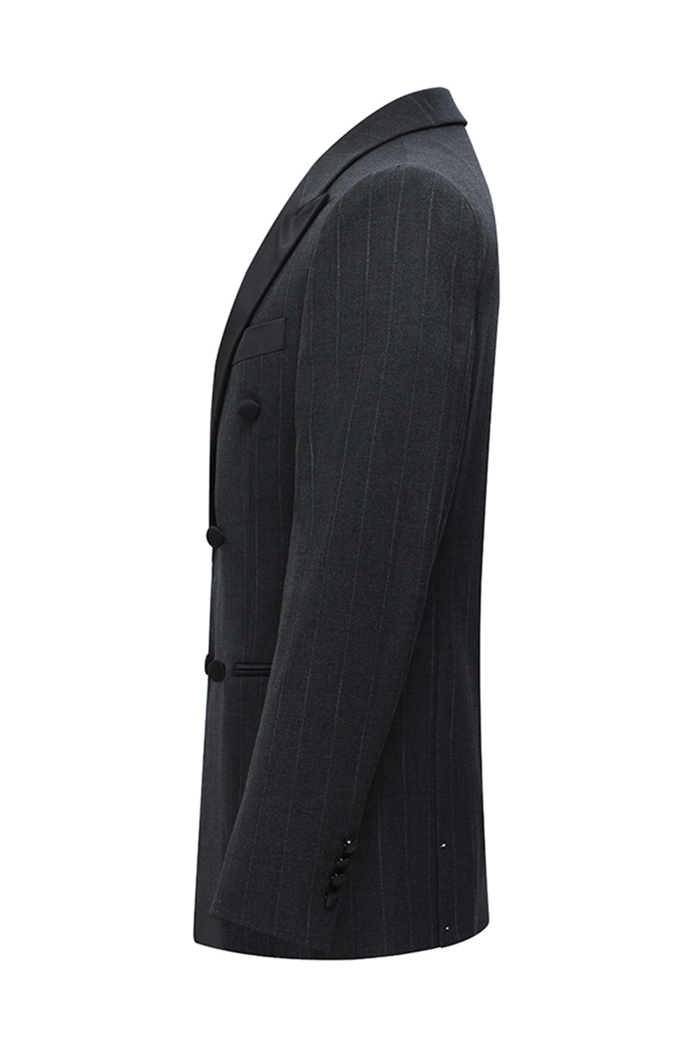 Ciemnoszare 2-częściowe dwurzędowe męskie garnitury w paski z klapami w szczyty