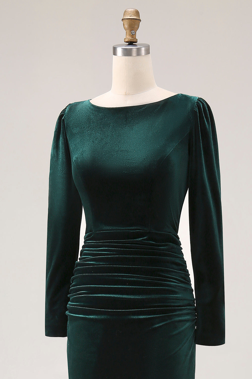 Ciemnozielona aksamitna sukienka robocza midi z długim rękawem