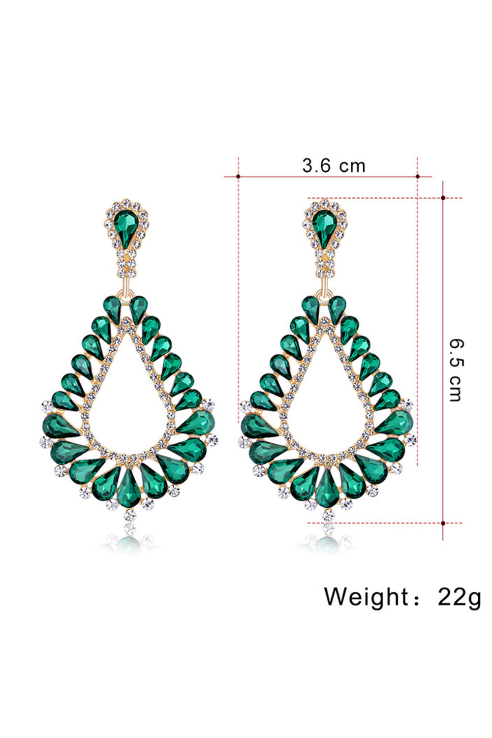 Ciemnozielone kryształowe kolczyki ślubne markizy