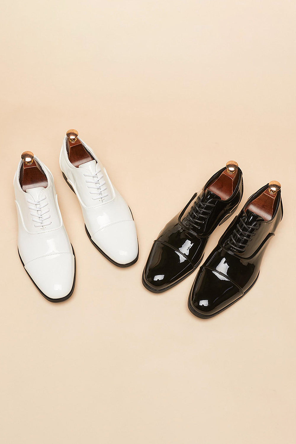 Czarne skórzane męskie buty ślubne ze sznurowadłami
