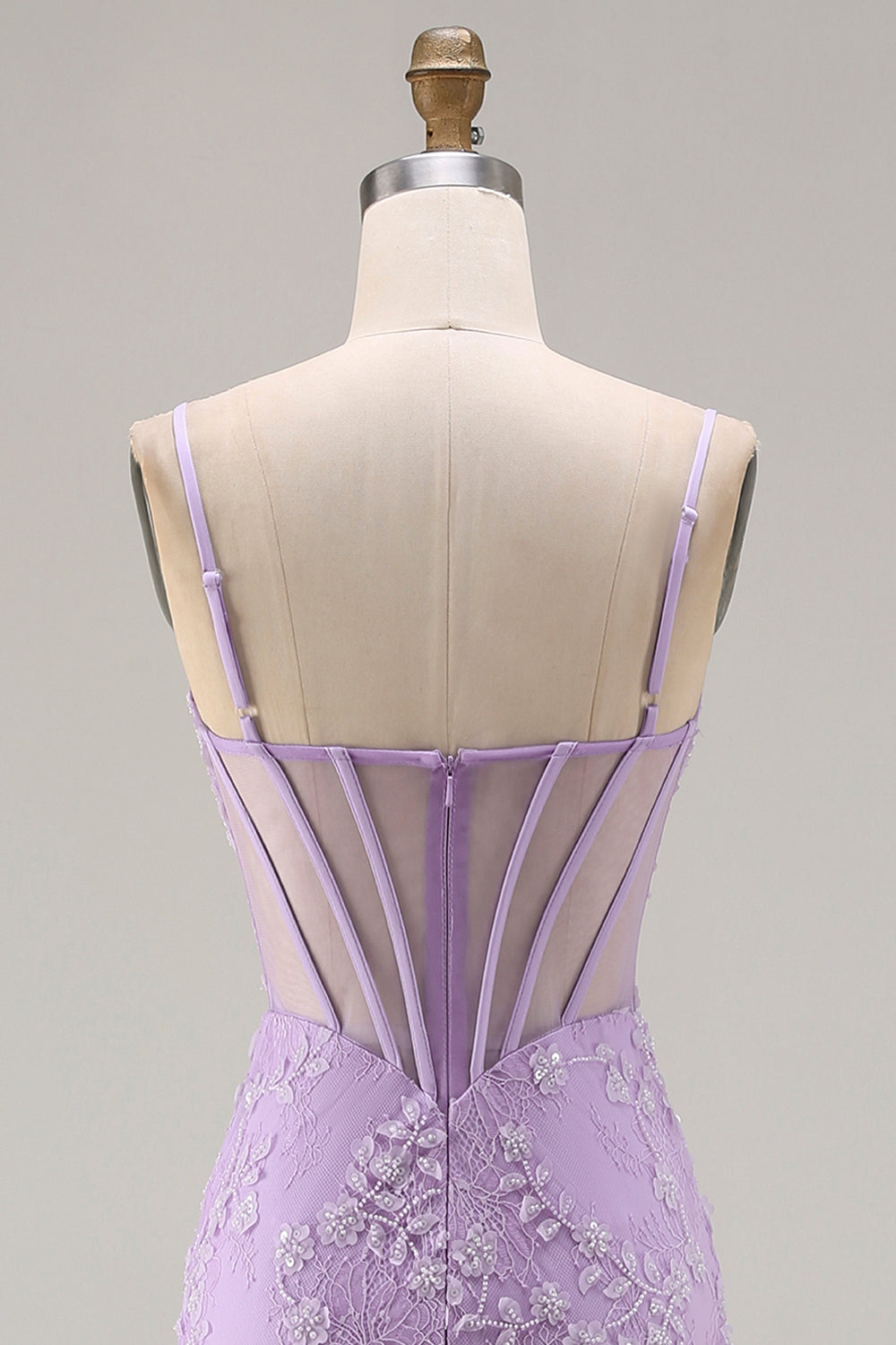Błyszcząca Fioletowa Koronkowa Syrenka Długa Gorset Sukienka Na Studniówkę z Koralikami
