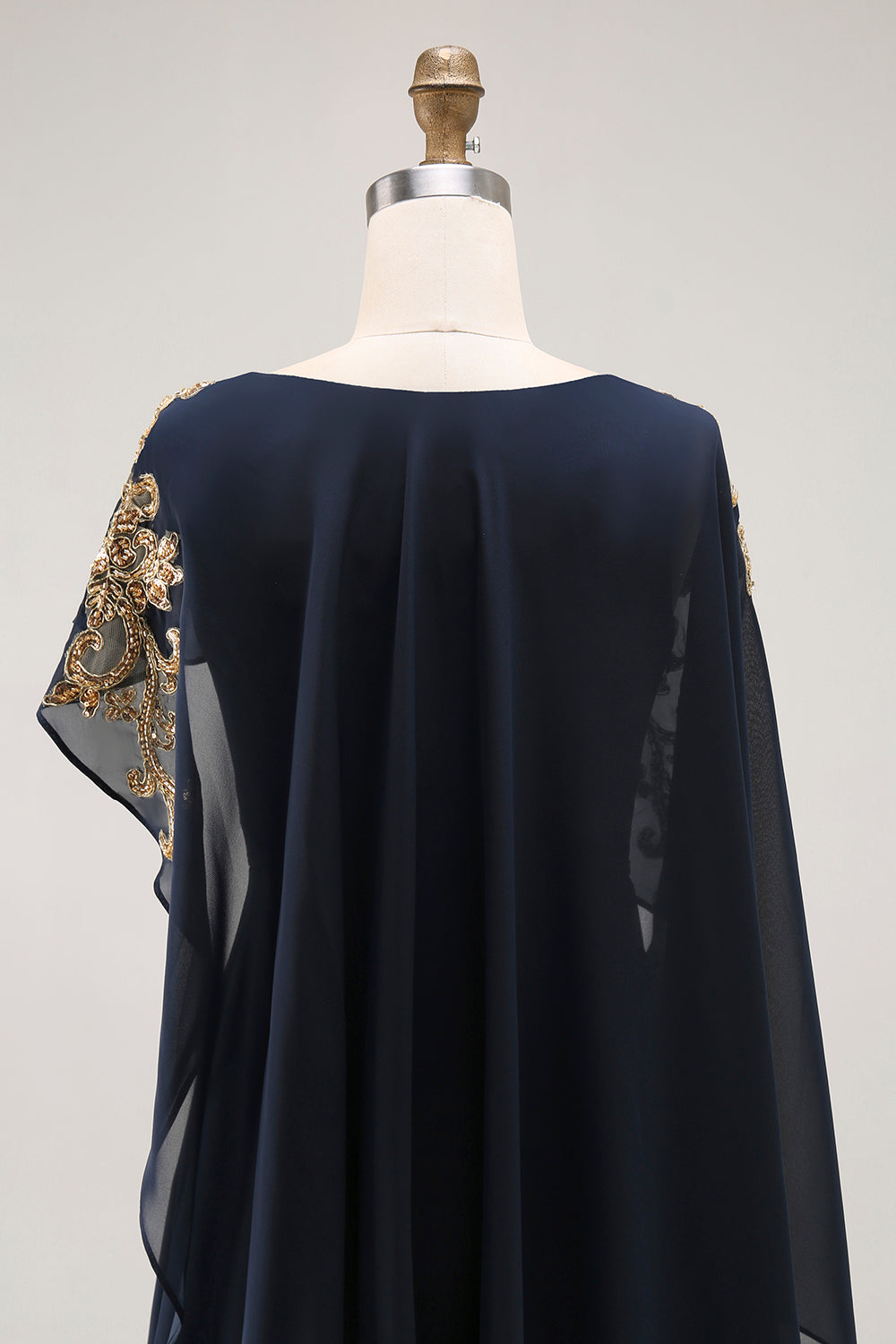Granatowa sukienka z aplikacją dla matki panny młodej z szalem