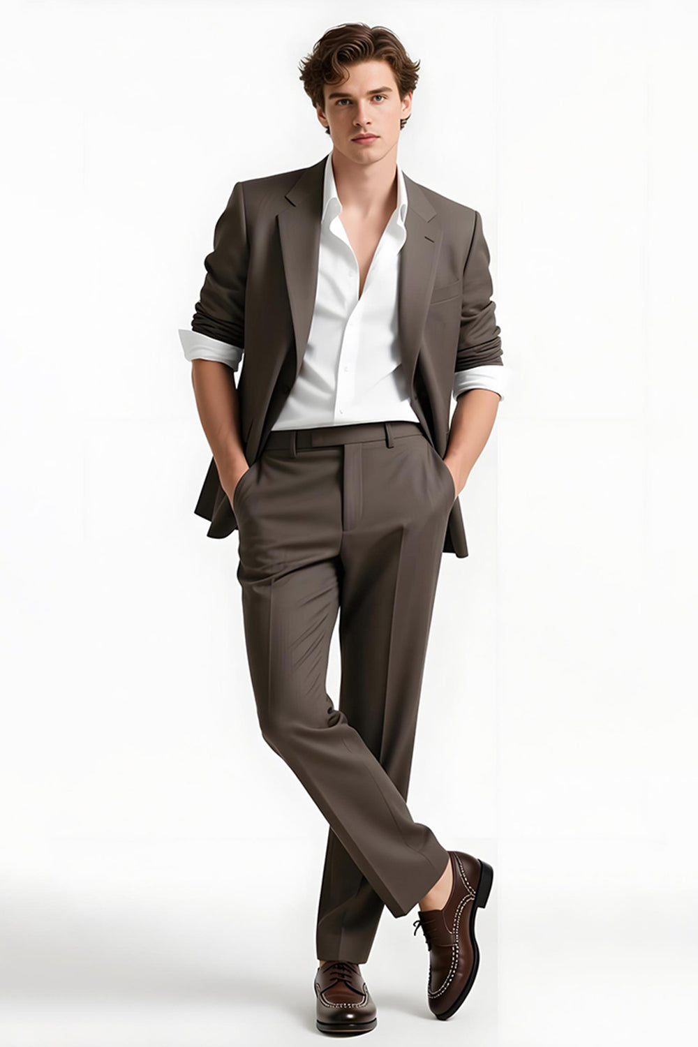 Grey Coffee 2-częściowe męskie garnitury wizytowe z karbowanymi klapami