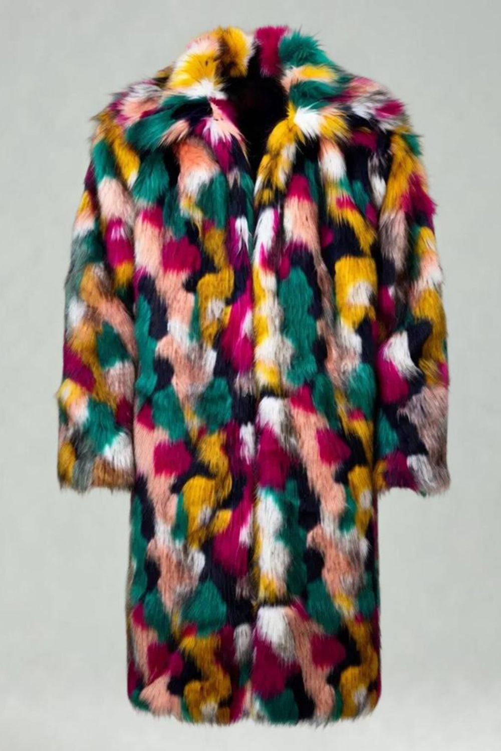 Gruby szal z futrzanym kołnierzem – kolorowy męski zimowy płaszcz