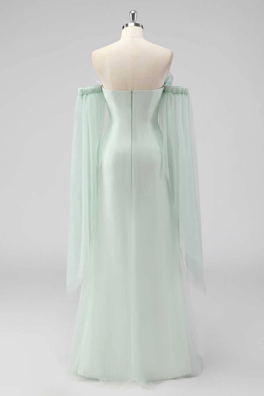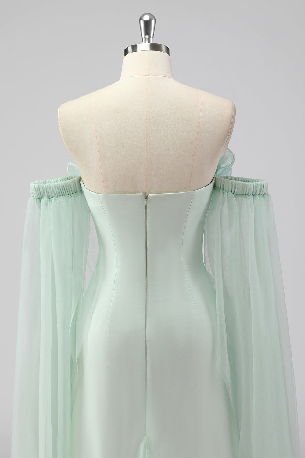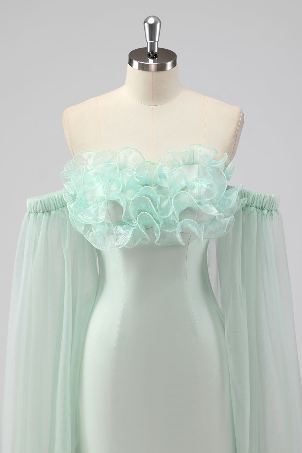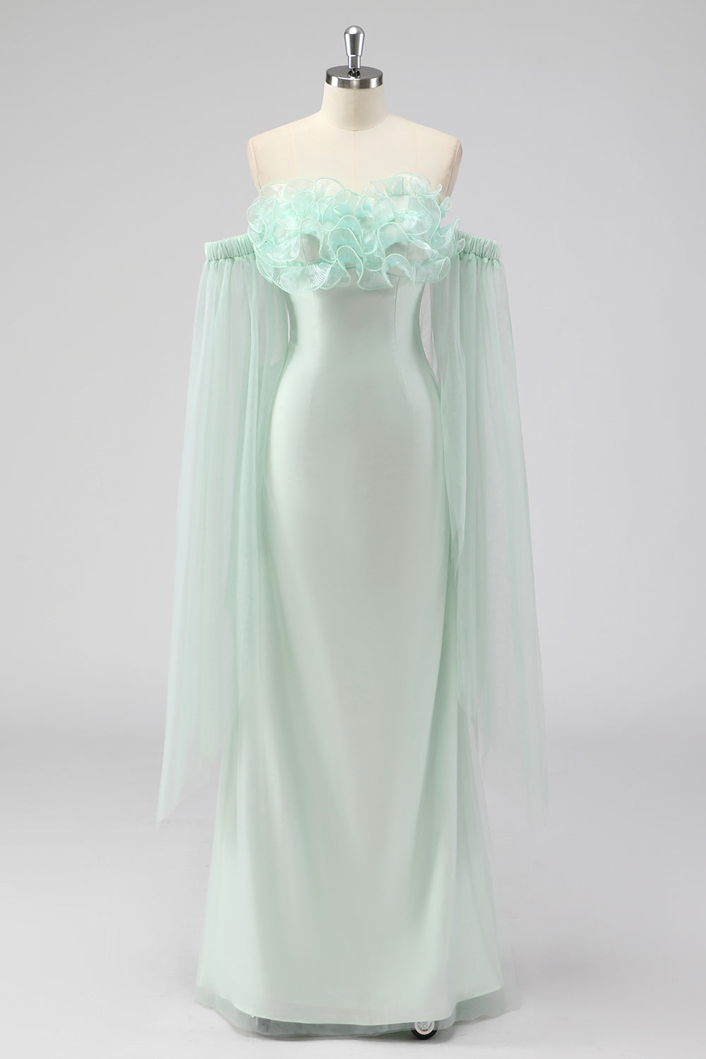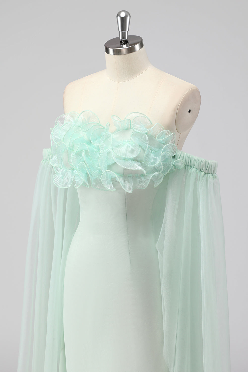Jasnozielona peleryna bez ramiączek Rękawy Płaszcz Gość weselny Sukienka