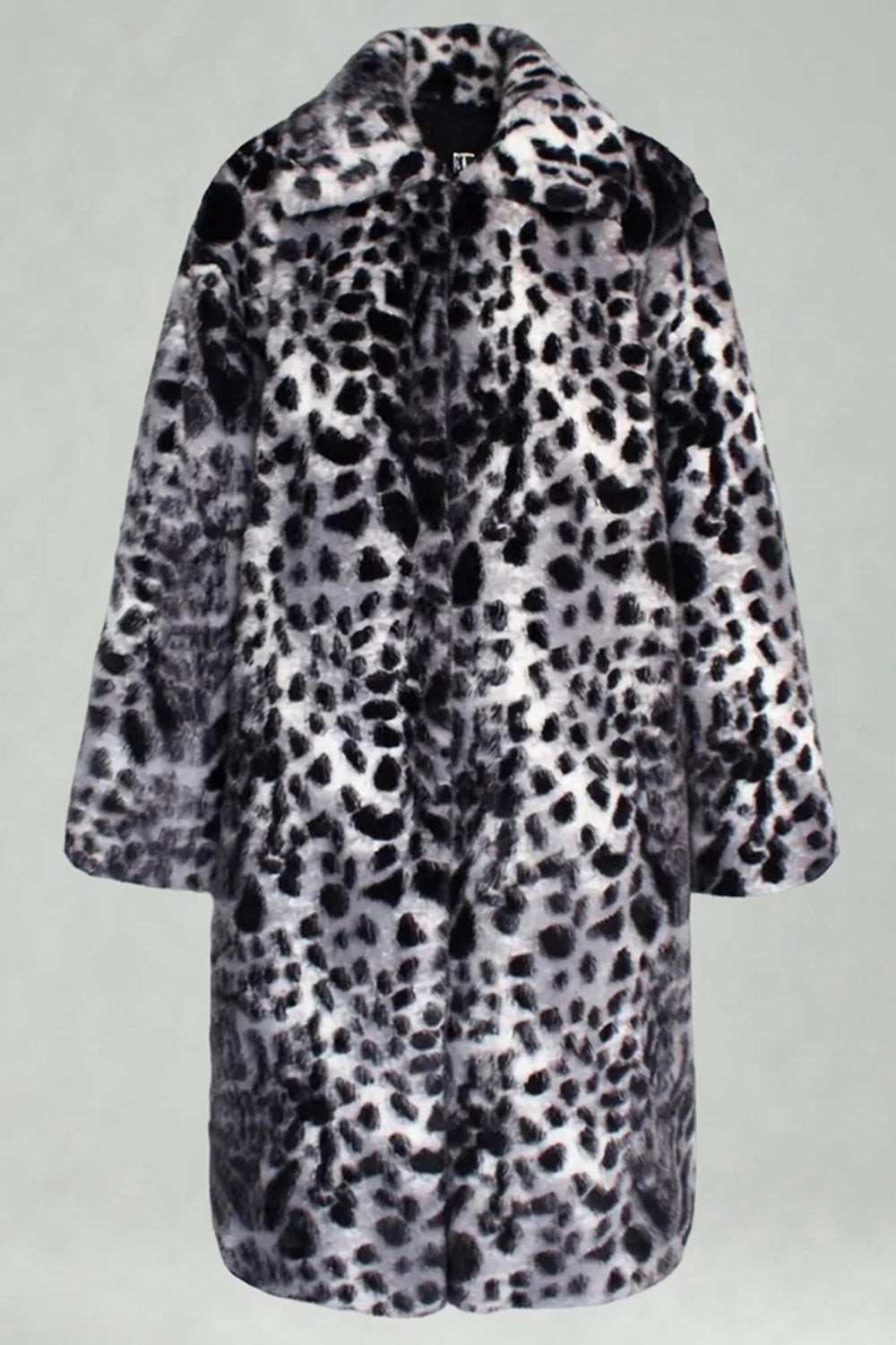 Kawowy szal z lampartem, długi płaszcz z sztucznego futra – męski płaszcz