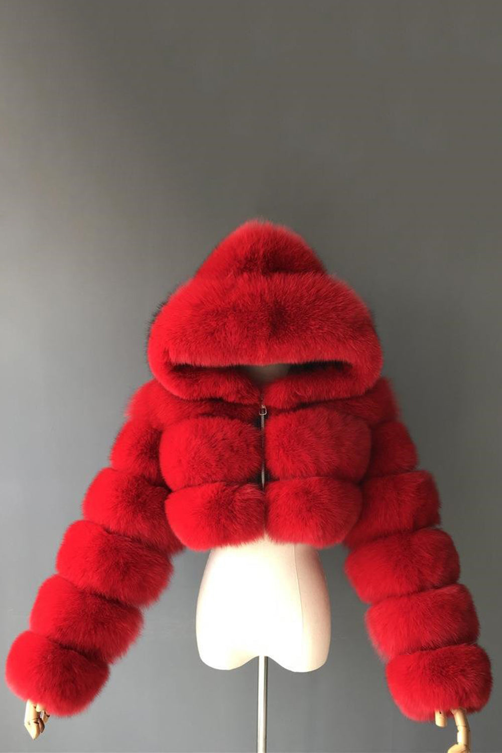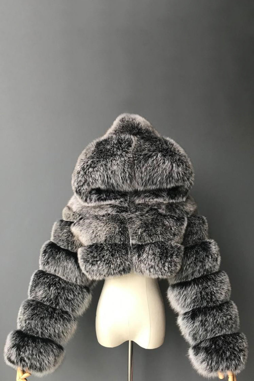 Królewsko niebieski futro z kapturem – pogrubione damskie futro