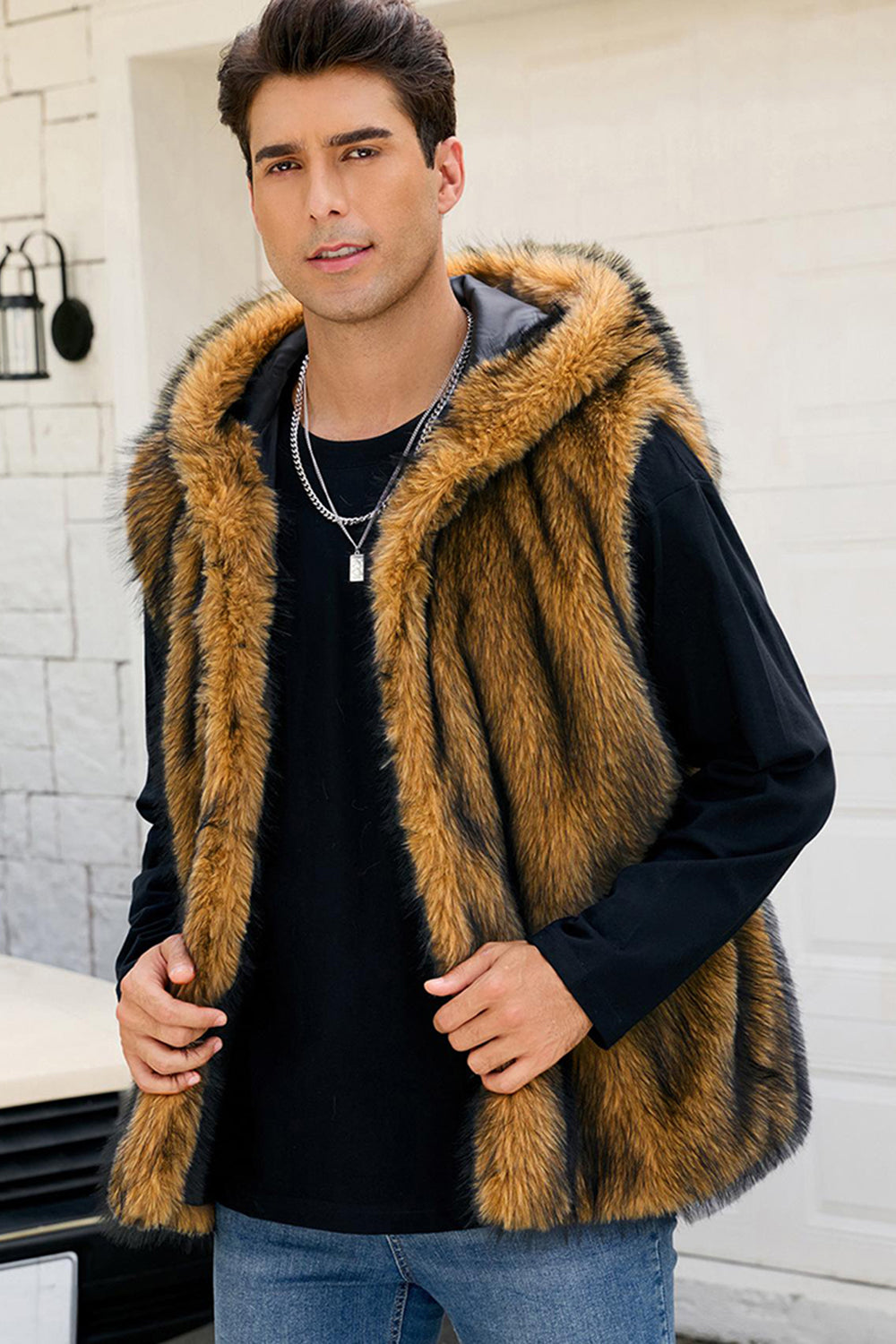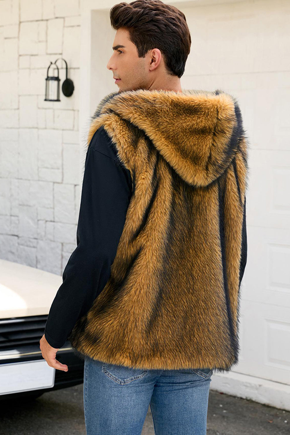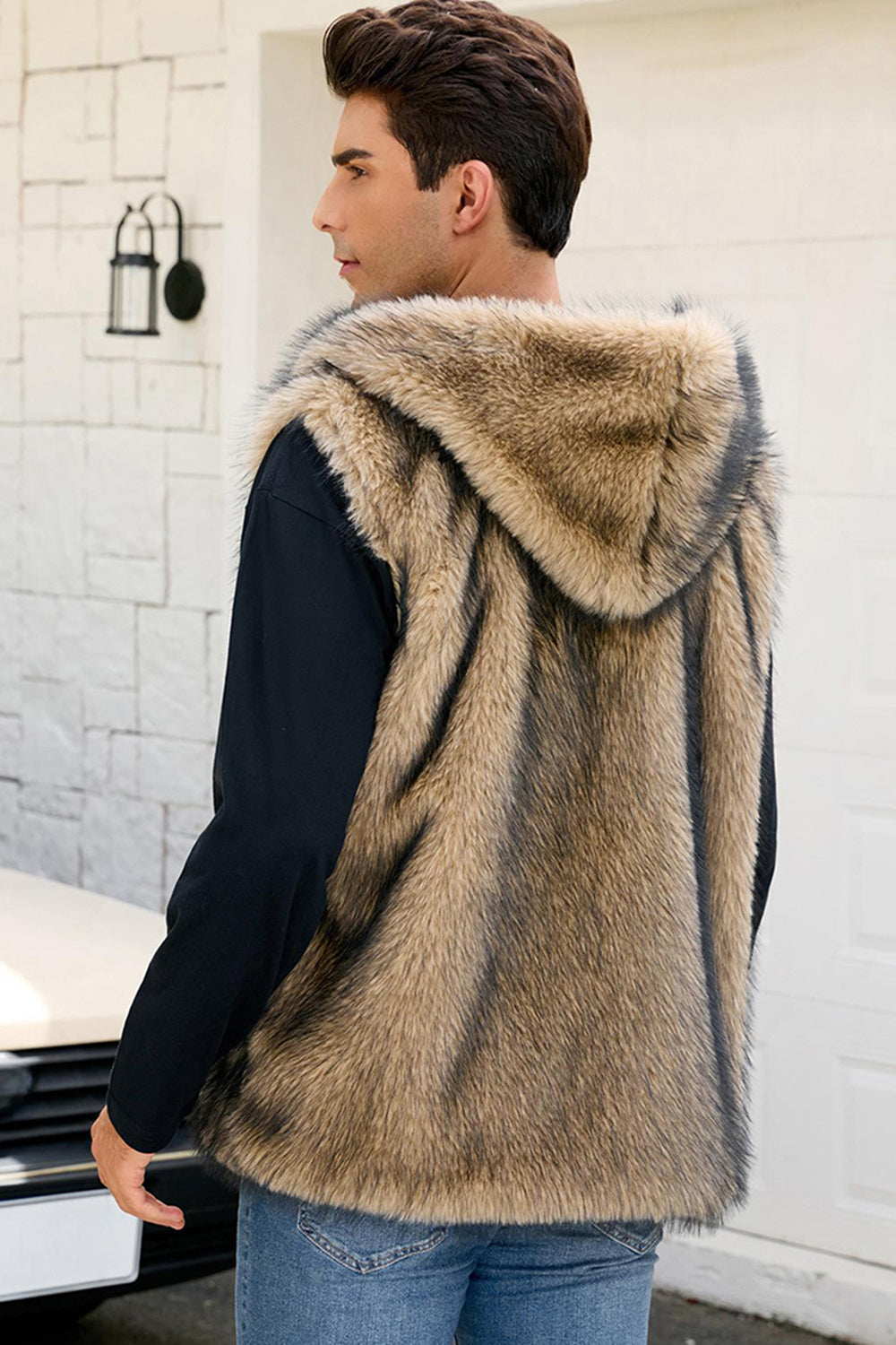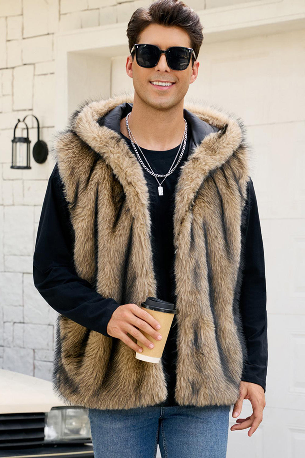 Męska kamizelka z kapturem z futrem z sztucznego futra wielbłąda