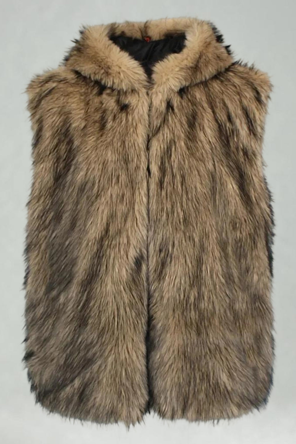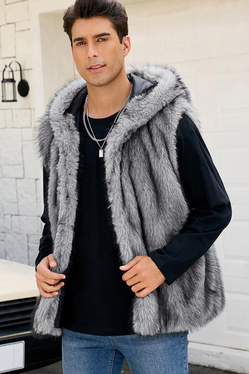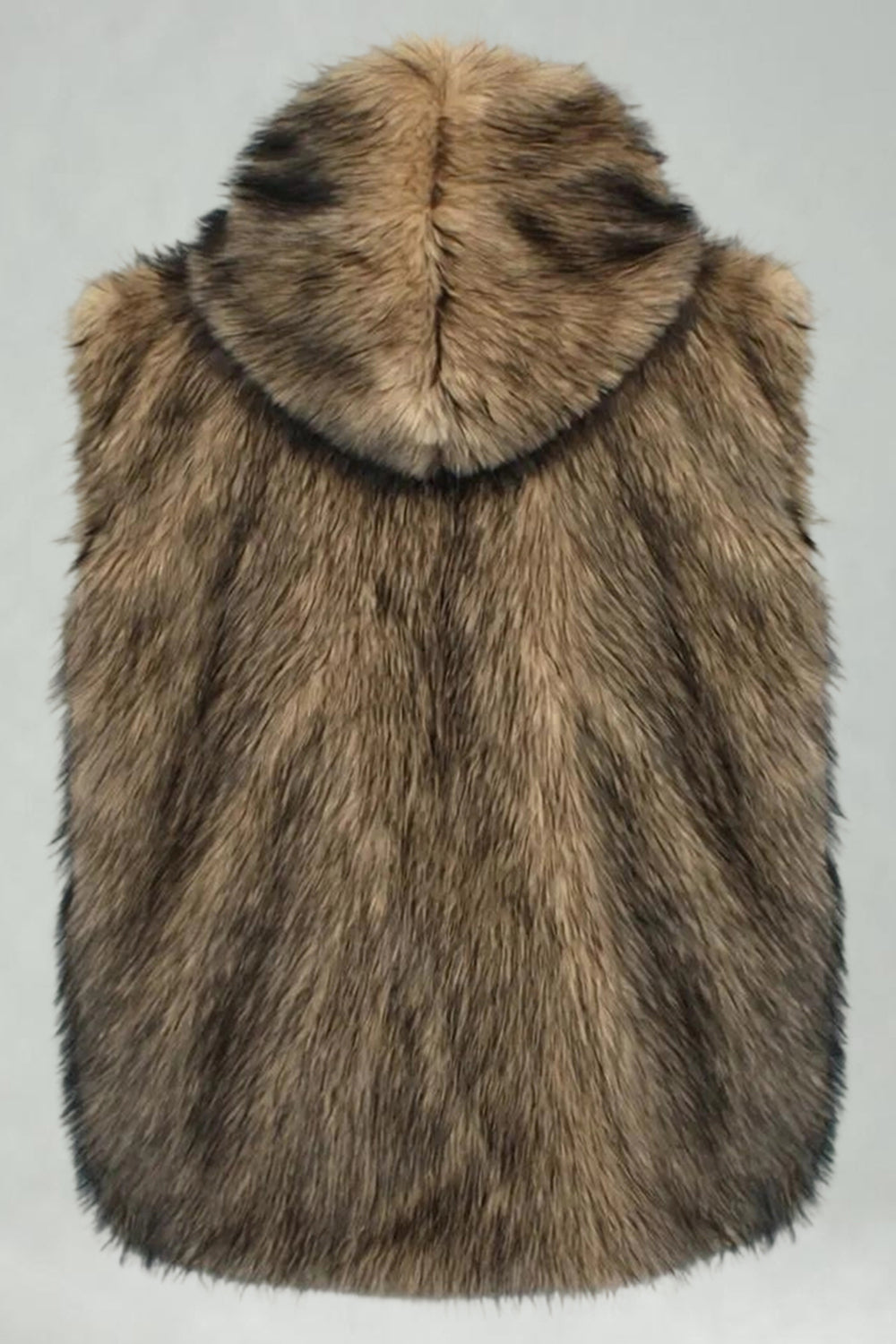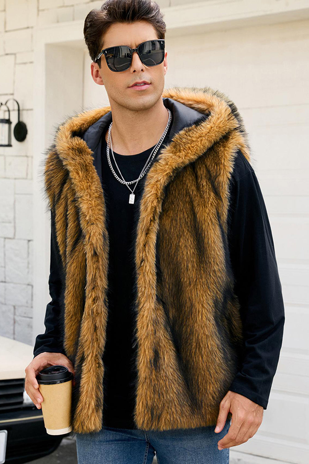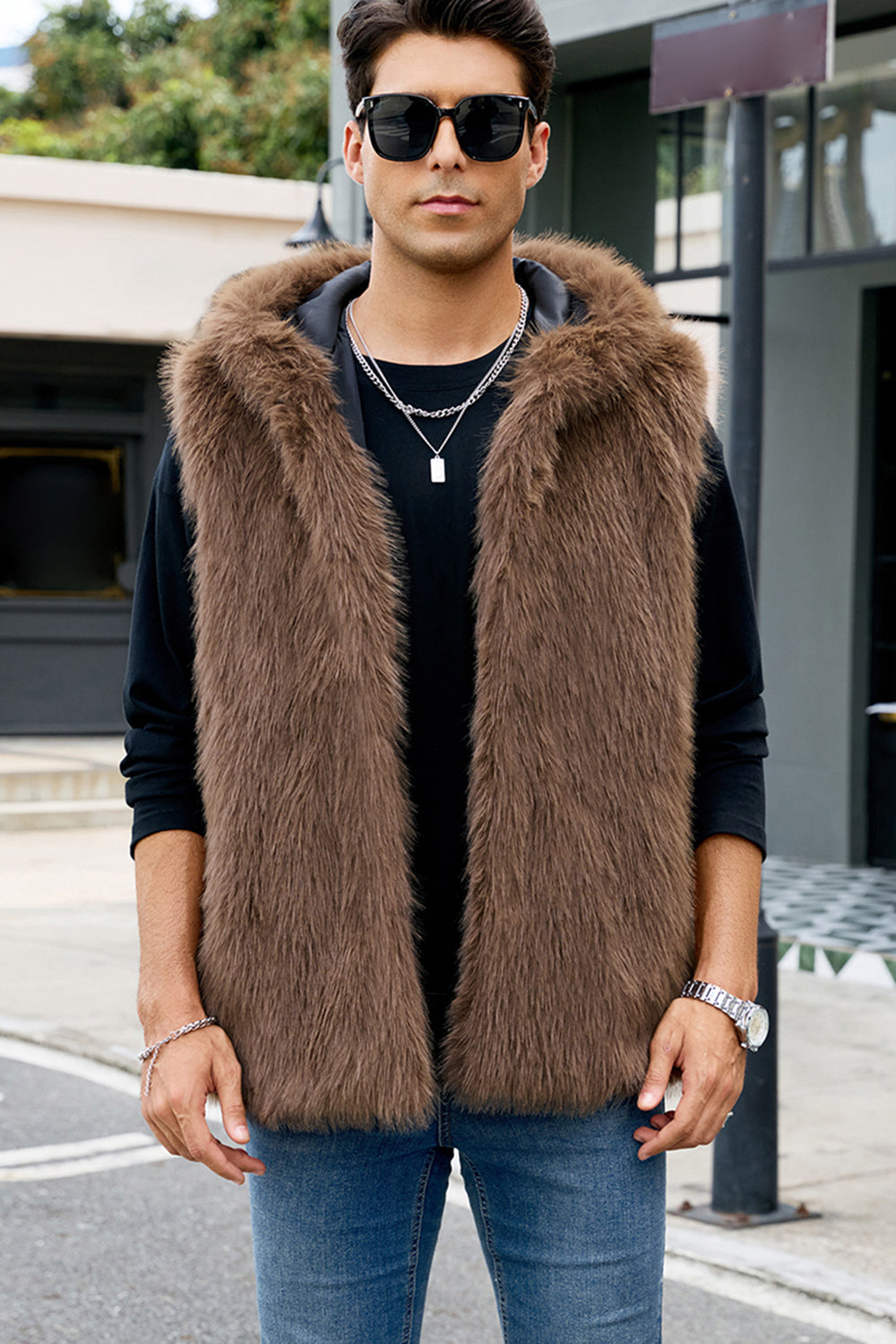 Męska kamizelka z kapturem z futrem z sztucznego futra wielbłąda
