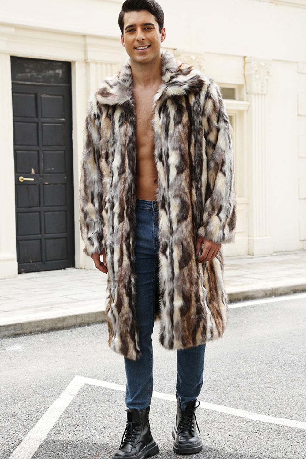 Męski futrowy szary futro – otwarty płaszcz zimowy z przodu