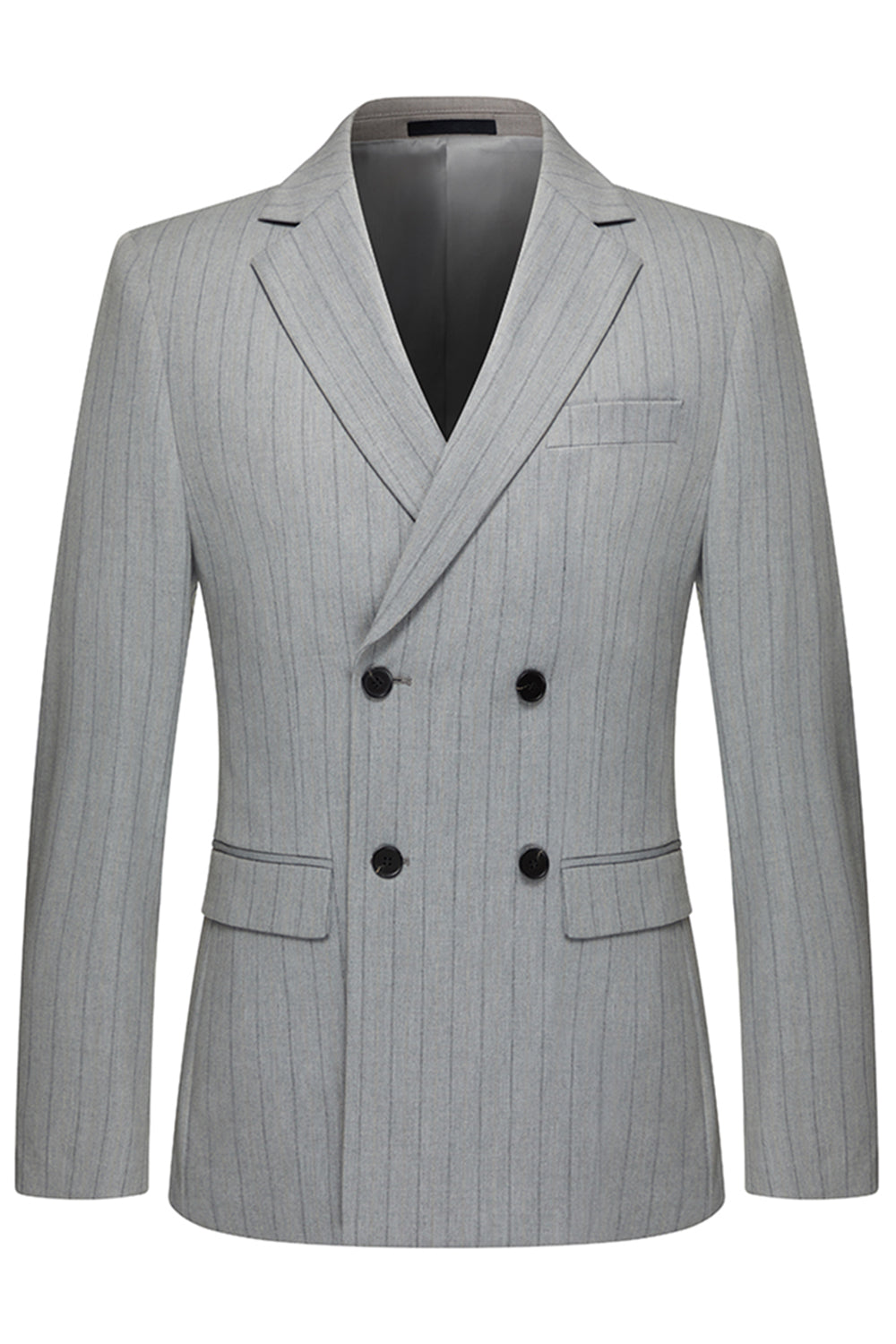 Męskie pasiaste, jasnoszare garnitury z klapami