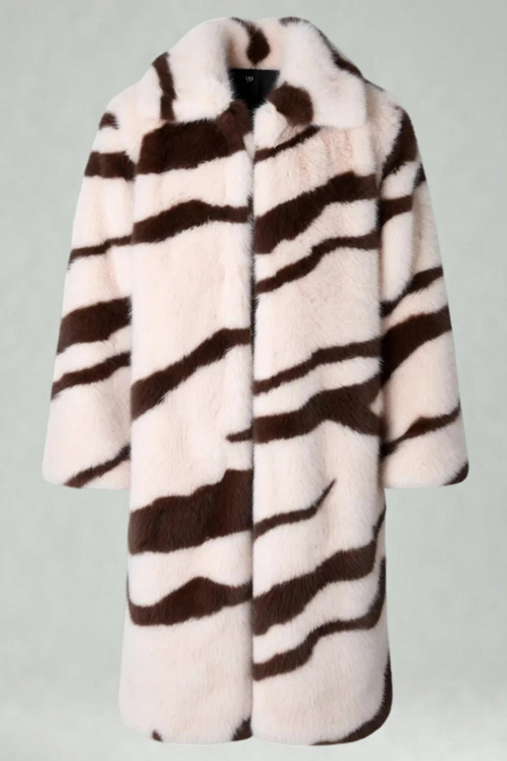 Morelowe zebry sztuczne futro z otwartym przodem długi męski płaszcz