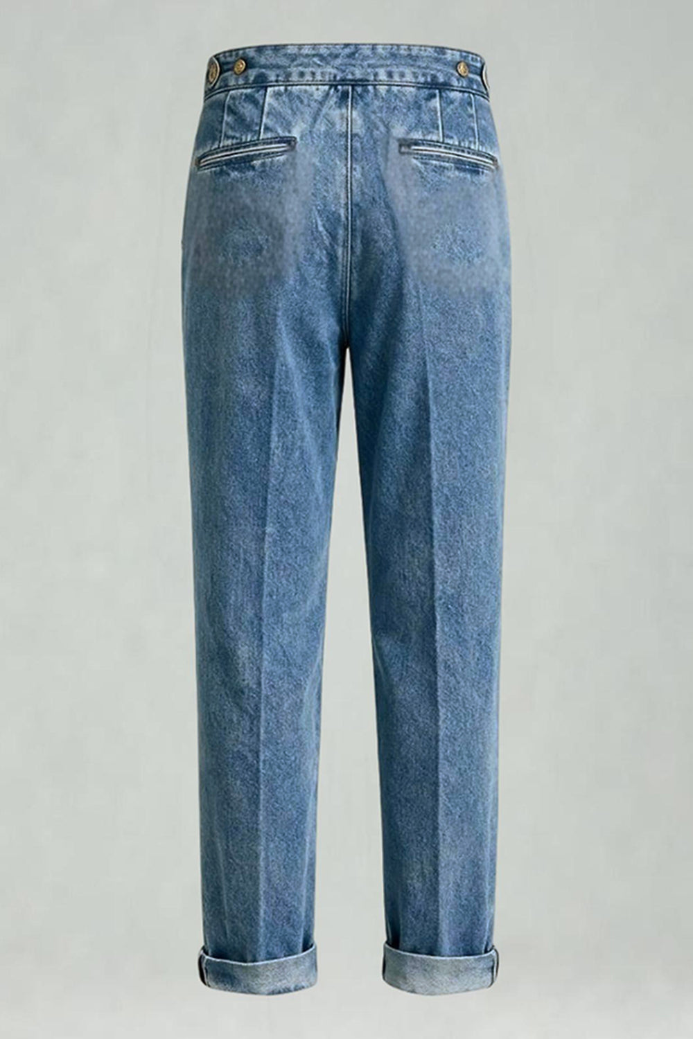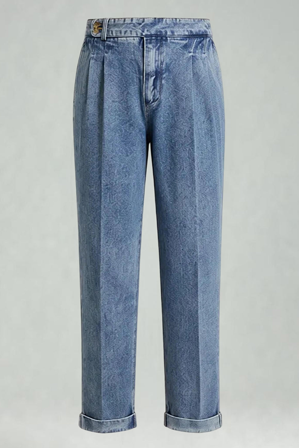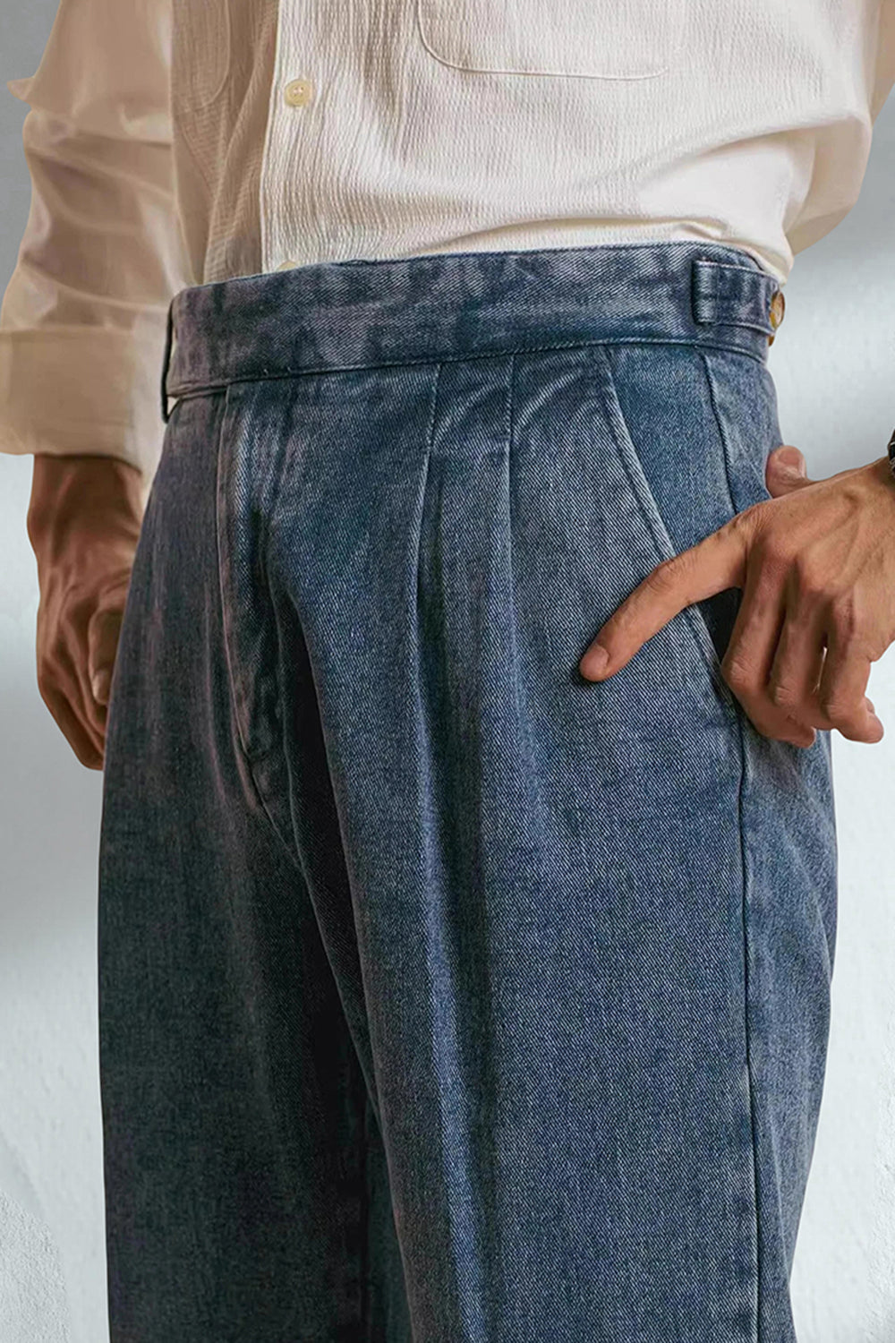 Niebiesko-szare dżinsowe spodnie męskie z prostymi nogawkami
