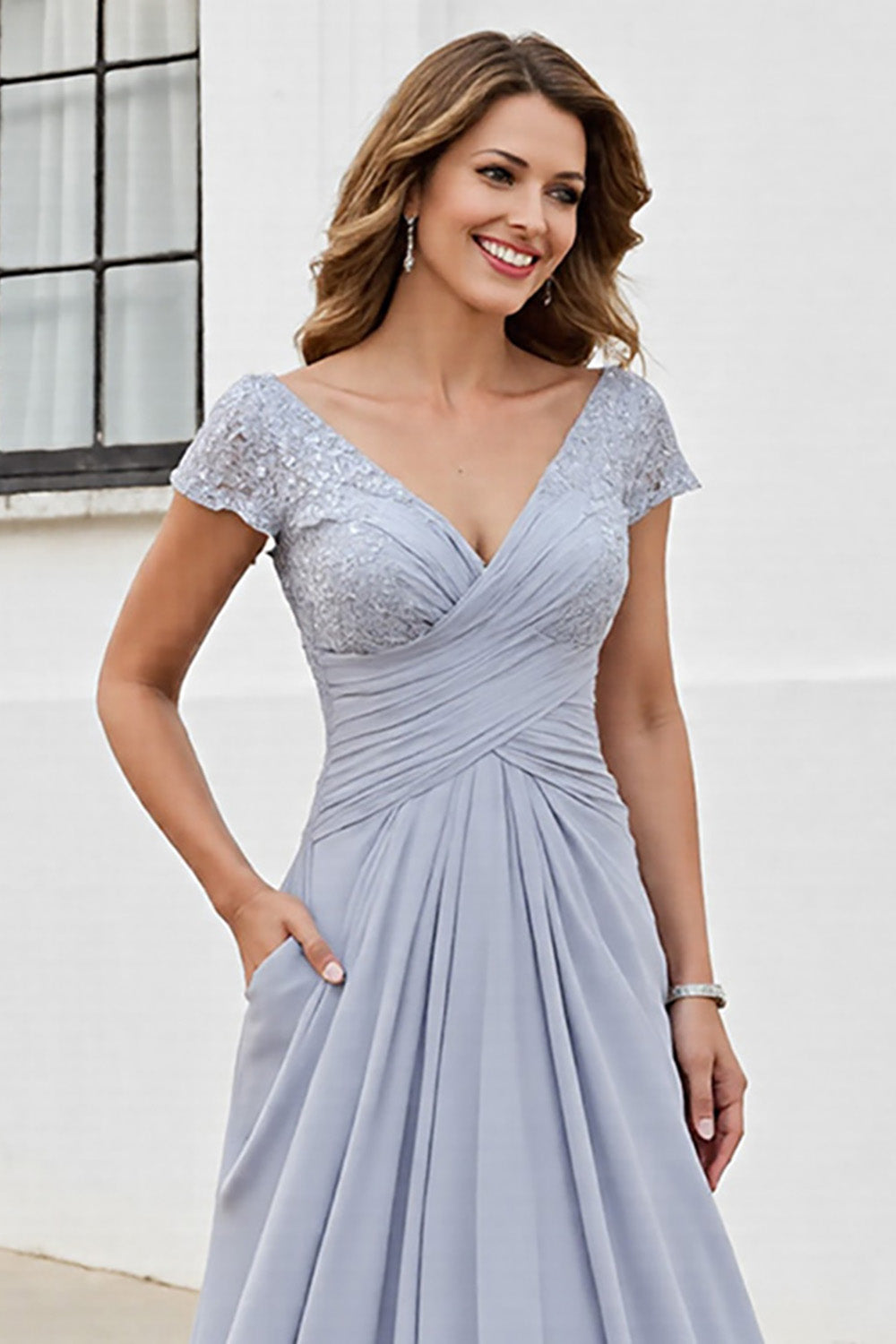 Srebrny dekolt w szpic z ruched linią sukienka dla matki panny młodej