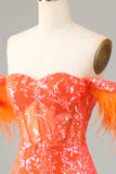 Wspaniała pochwa z ramienia niebieska krótka sukienka z piórkiem
