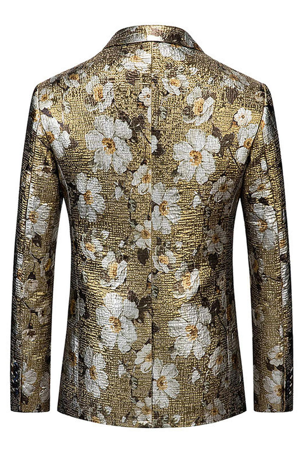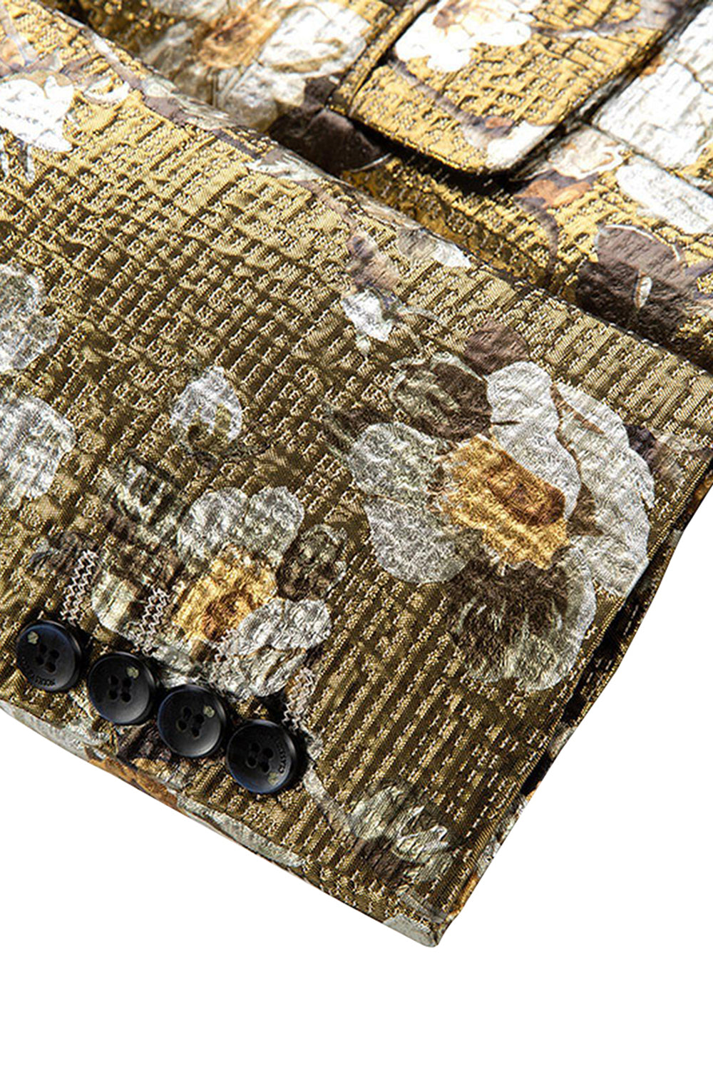 Złota kwiatowa marynarka na bal z jednym guzikiem